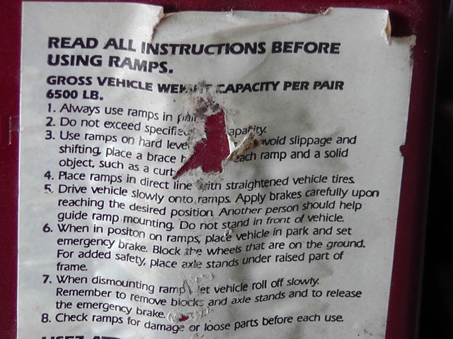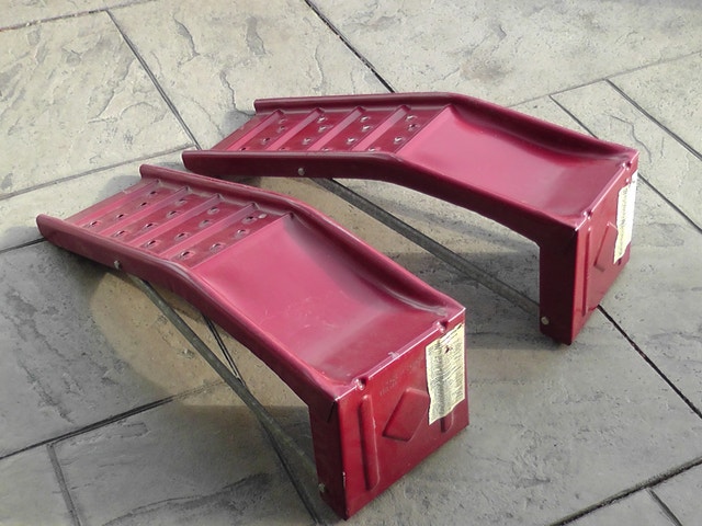 Selling a pair set of ‘ramp’ drive onto maintenance risers. Perfect for driving onto hassle free by a car, ATV, etc. It has a weight capacity of 6500 lbs (2.94 metric tons or 2948 Kilograms) Used only a few times and in extra good (no rust, or dents) condition. Asking $45. I am located in west end of Etobicoke just at the Mississauga border. Please call 416-737-0736 for details.