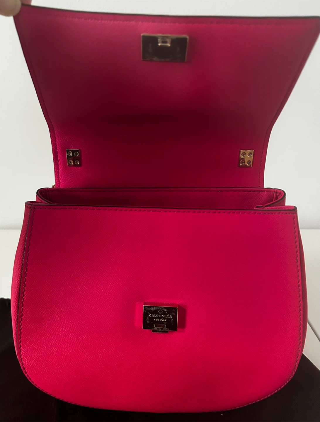 Authentic Kate Spade New York hot pink saffiano leather crossbody bag in excellent, like-new condition