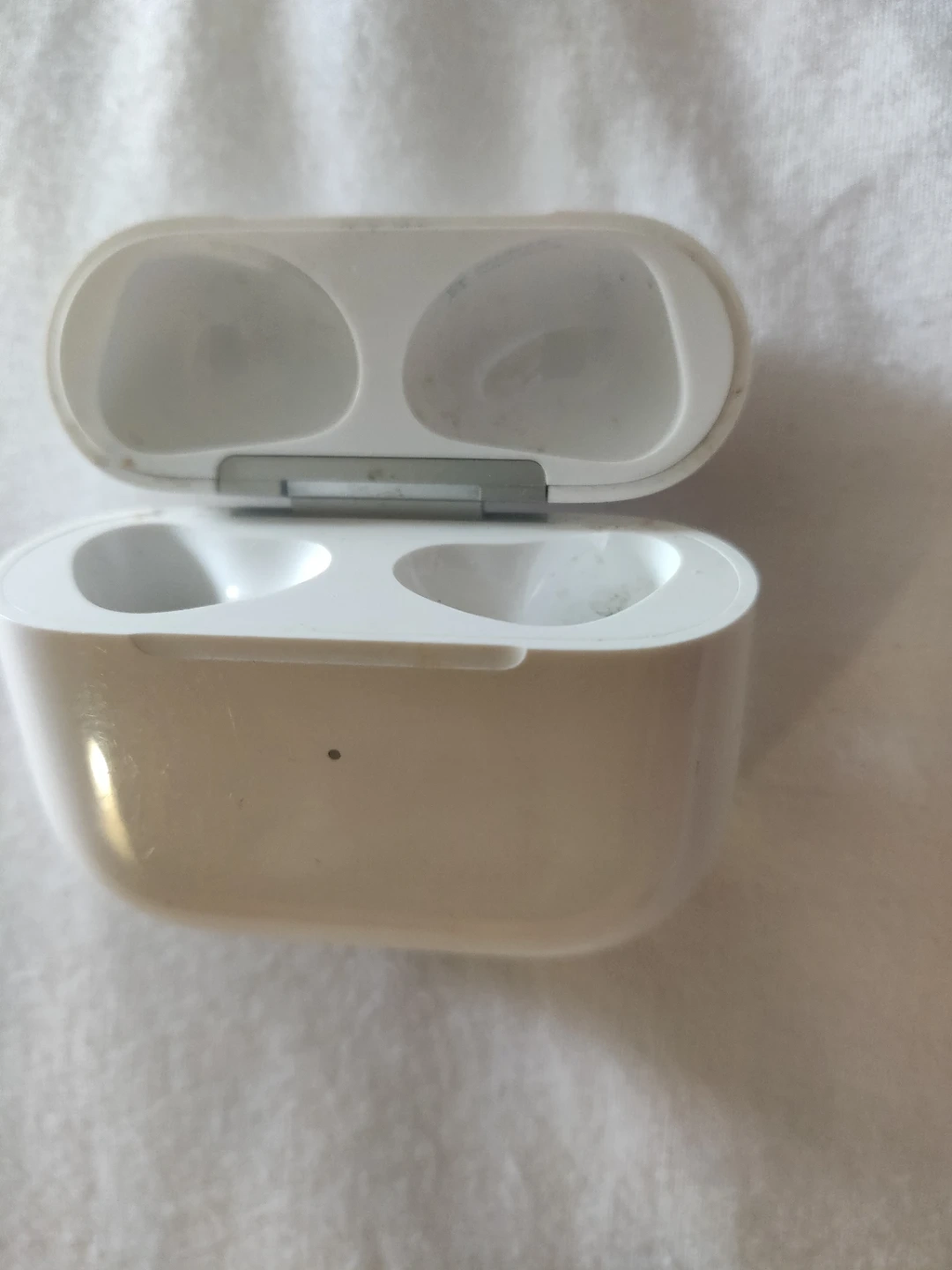 This is a white charging case for Apple AirPods (3rd Gen) Megsafe. It includes the charging case only. 7out 10 condition.