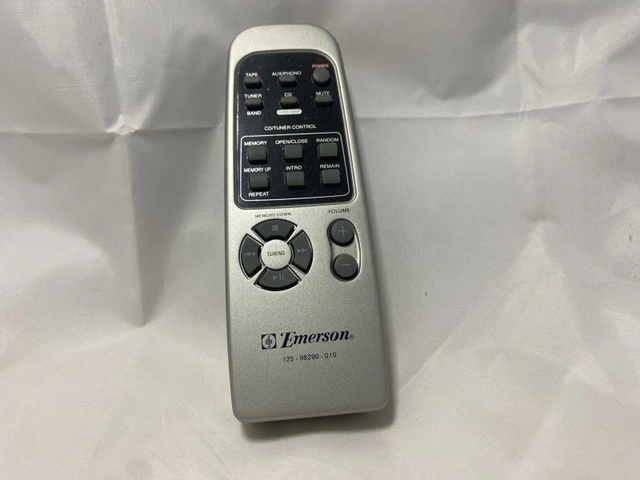 This is a used Genuine Emerson 125-98290-010 Remote Control. It is in good working condition. Perfect for controlling your Emerson device from the comfort of your couch!