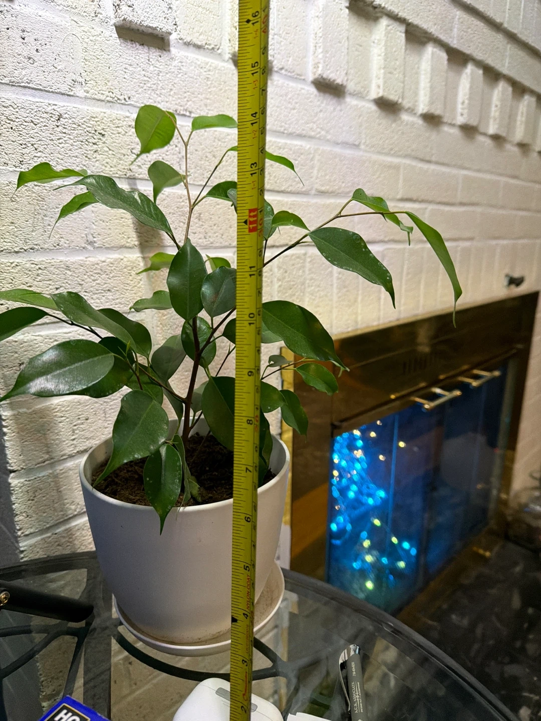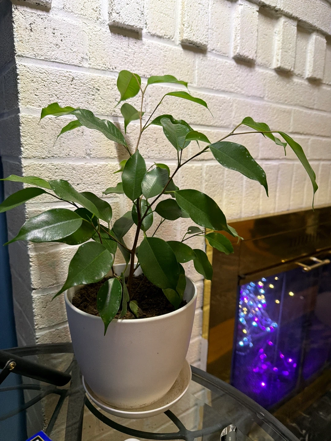 Selling a healthy Ficus Benjamina plant in a simple white pot. It's about 16 inches tall and would look great in any room! The plant is easy to care for and adds a touch of greenery to your space