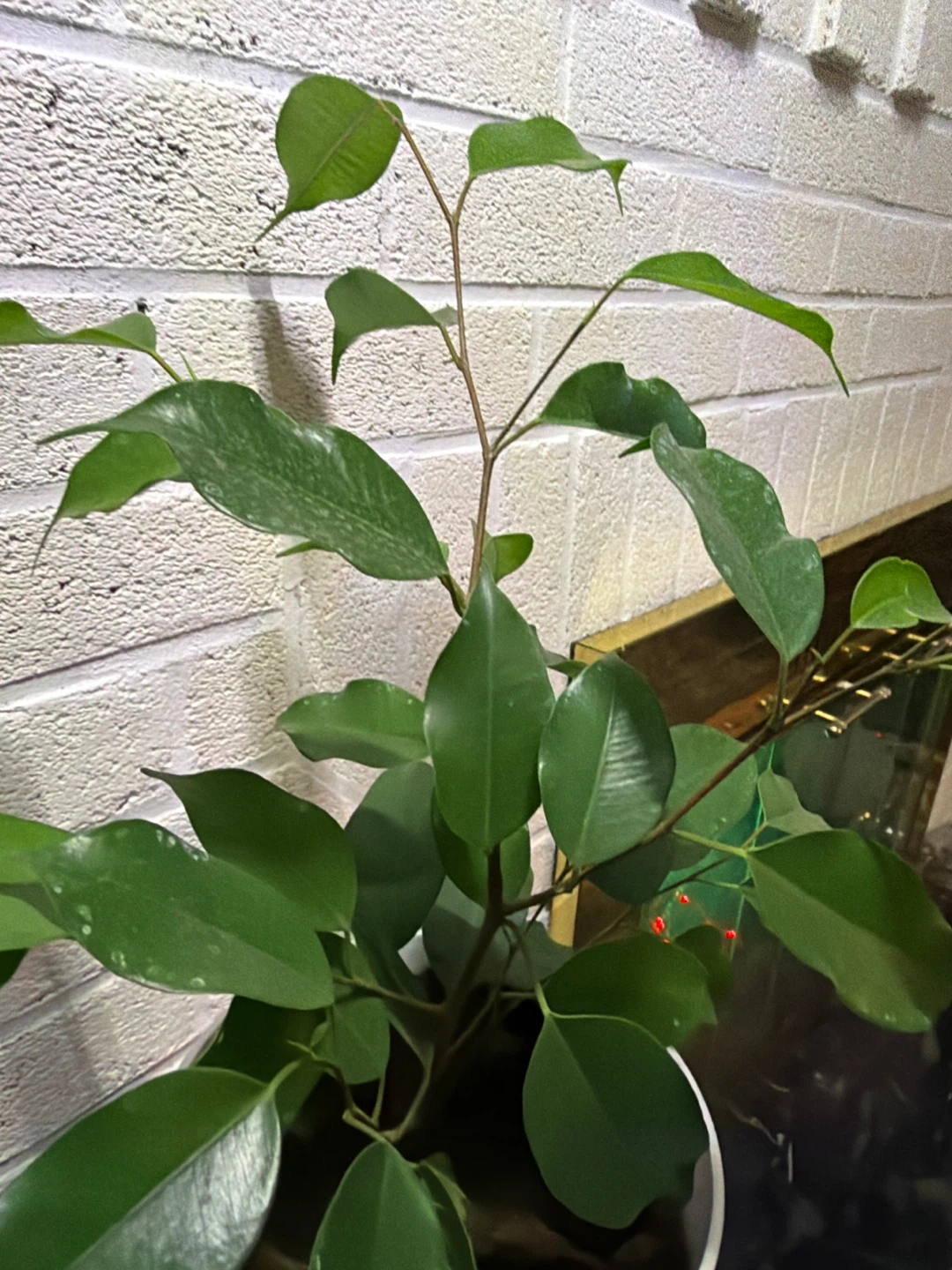Selling a healthy Ficus Benjamina plant in a simple white pot. It's about 16 inches tall and would look great in any room! The plant is easy to care for and adds a touch of greenery to your space