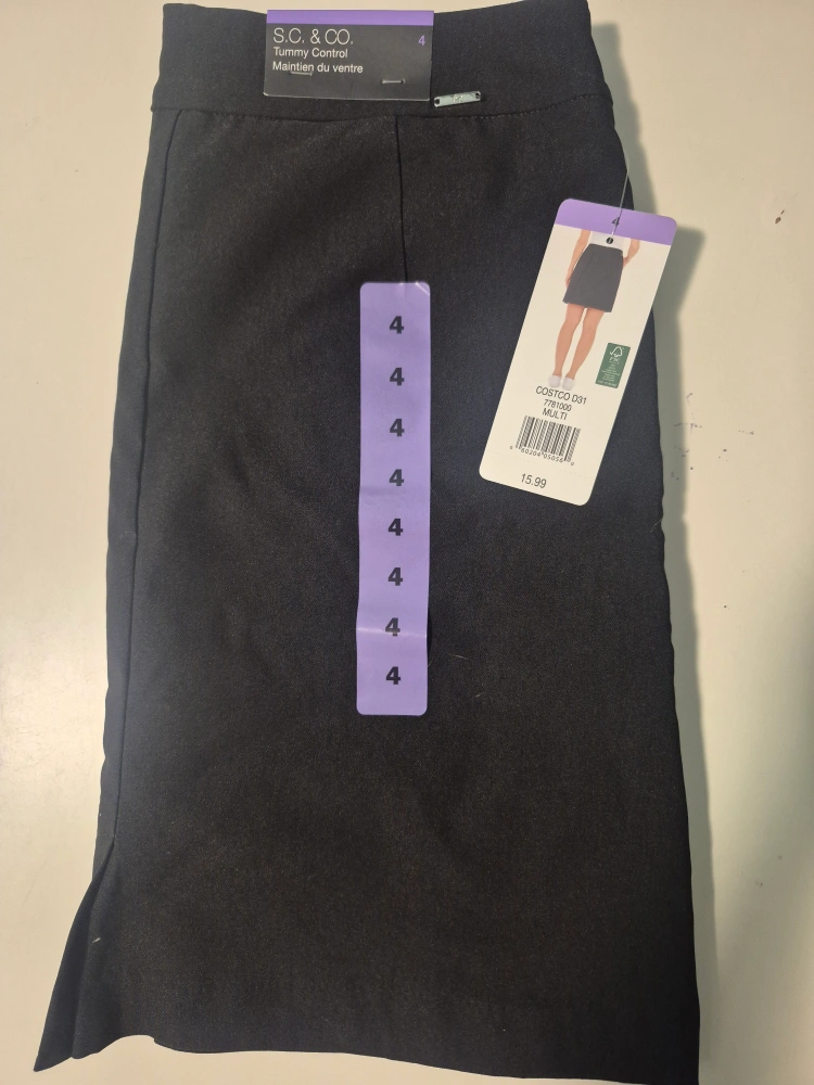This is a S.C. & CO. black skirt in size 4. It features tummy control and was originally bought for $15.99. It's in great condition and ready for a new home