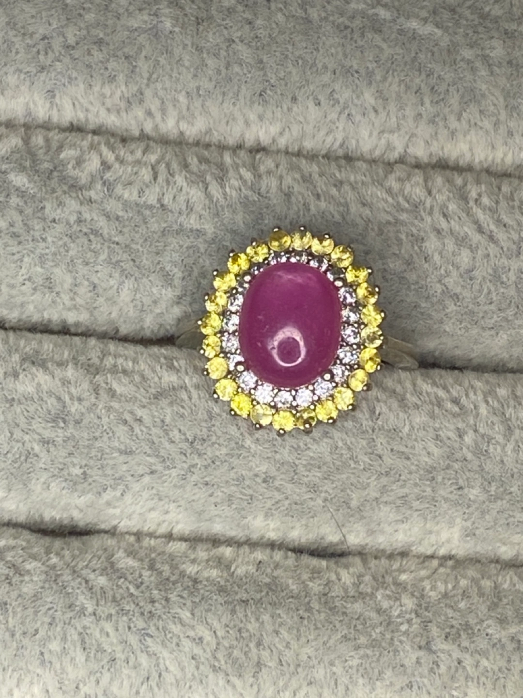 86Size 6 S. Silver ring with ruby and yellow sapphire accent stones