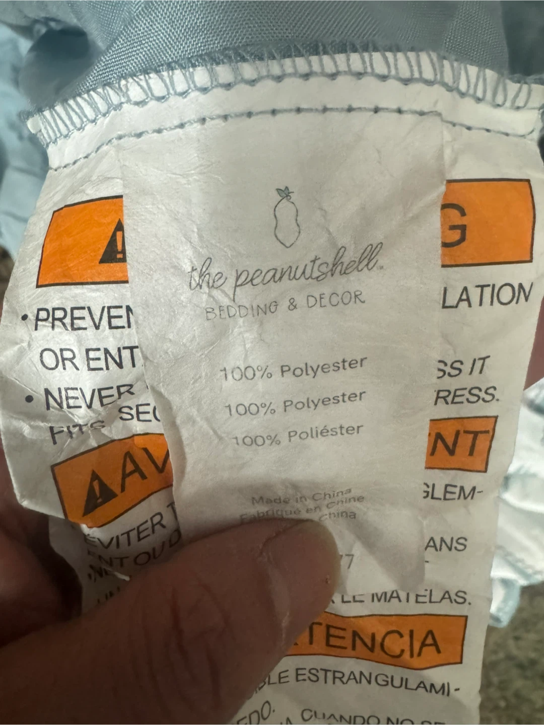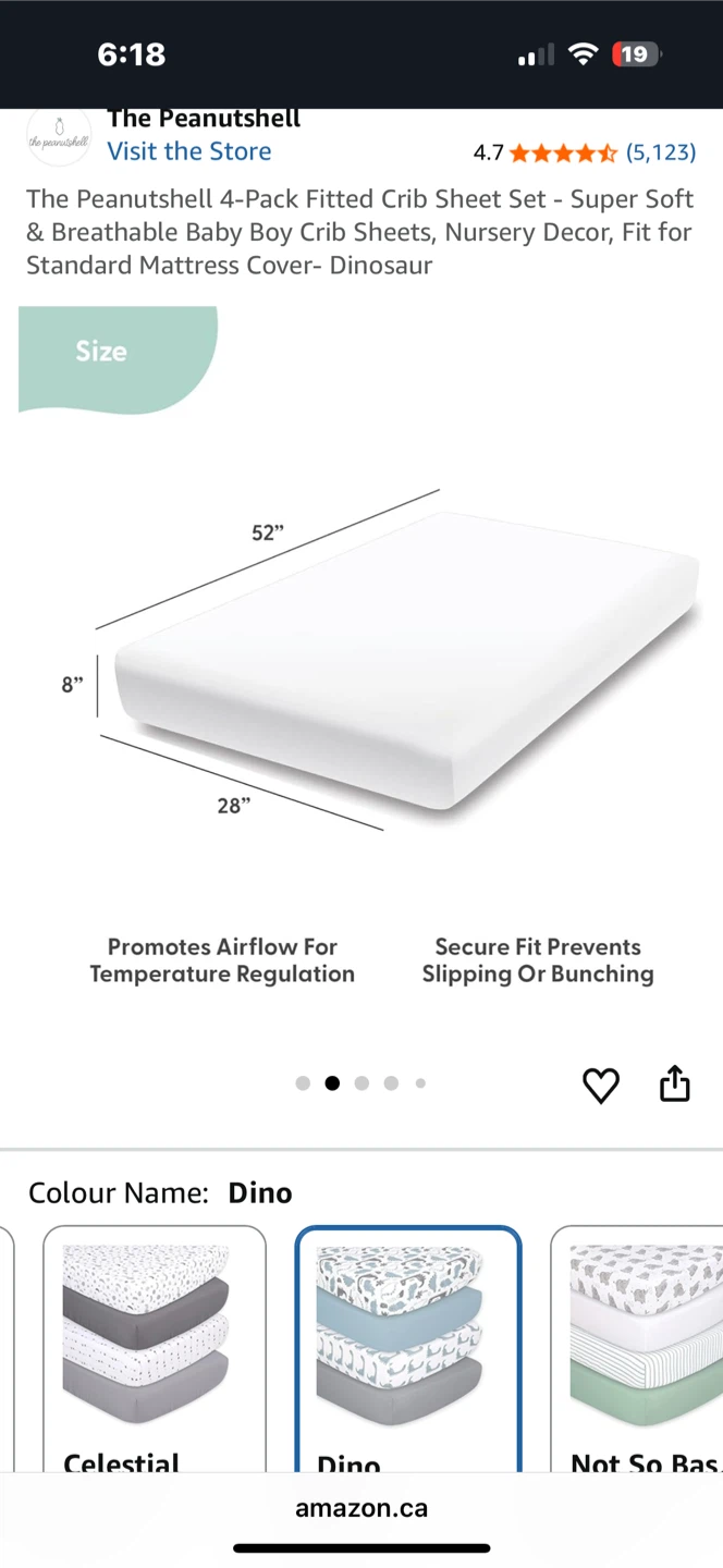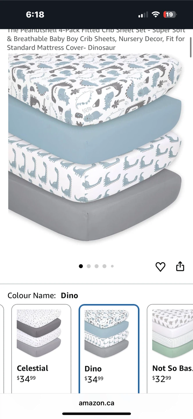 Four fitted crib sheets in a dino print and solid colours. Made of 100% polyester. Fits standard mattresses.