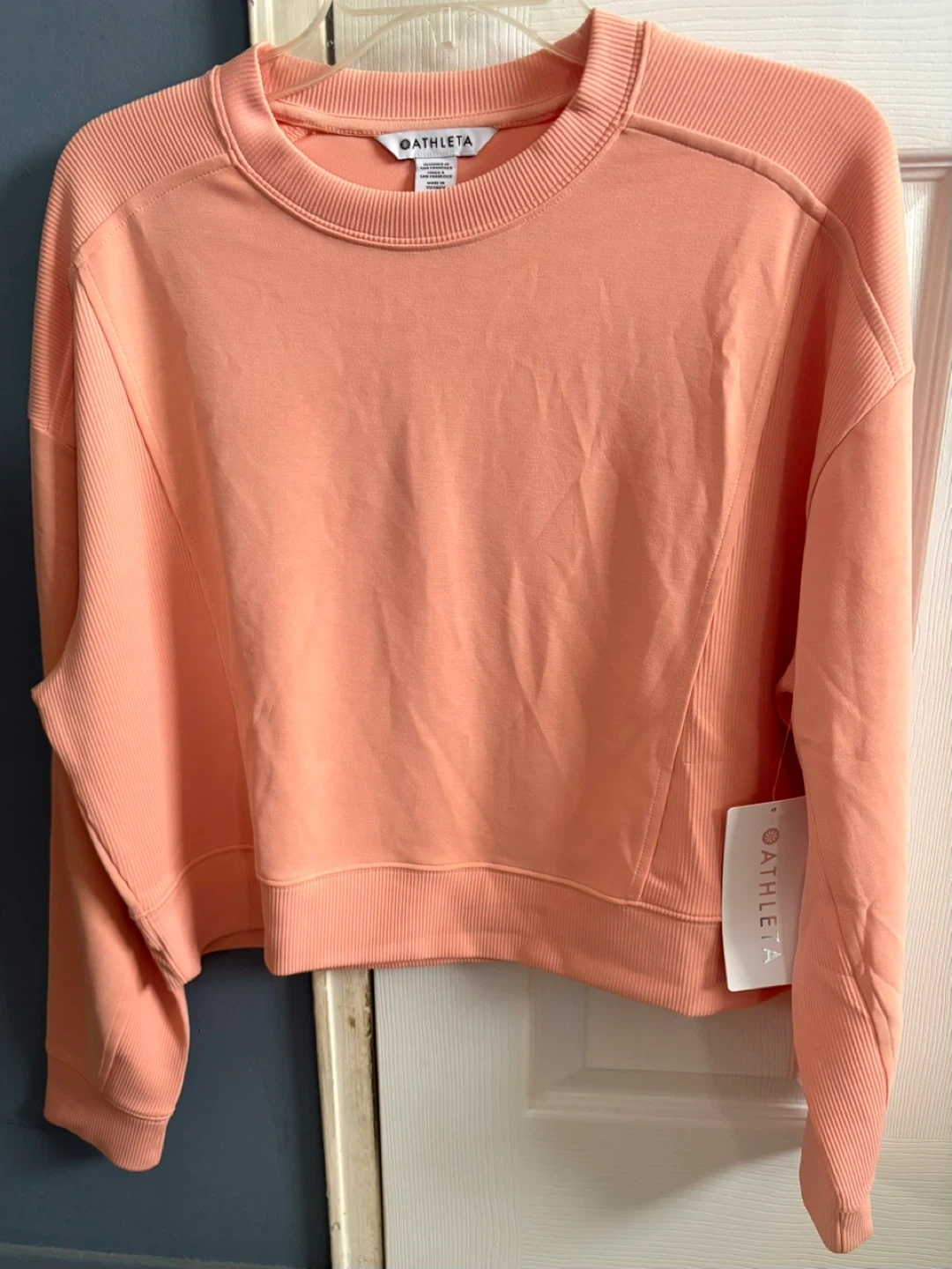 Buy & SellAthleta Peach SweatshirtAthleta Peach Sweatshirt$60This is a peach-colored sweatshirt from Athleta. It's a size medium. It features ribbed cuffs and hem.ConditionNewSizeMediumBrandAthletaWHERE TO MEETCheck LocationView MapSELLERKat PCentereach50 reviews0 chats·0 favorites·1 viewsSEND CHAT TO SELLERHi Kat P! I’m interested in your listing.Hi Kat P! I’m interested in your listing.Get the Karrot app to chatSign In to chat