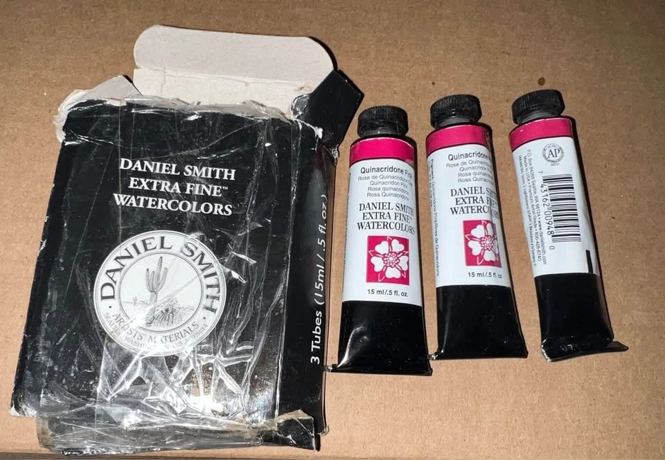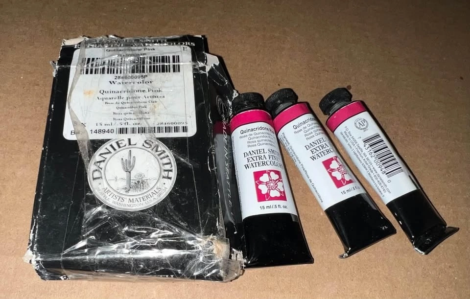 NEW in package. Qty: 2 Available ($15 Each or $25 for both). DANIEL SMITH is a leading manufacturer of watercolors for artists worldwide, offering over 240 colors. Quinacridone Pink is a precise, low-staining pink. It's highly durable and extremely transparent, with vivid clarity and intensity. Very Good Lightfastness, Transparent, Non-granulating, Low staining. PV 42. Conforms to ASTM D4236.