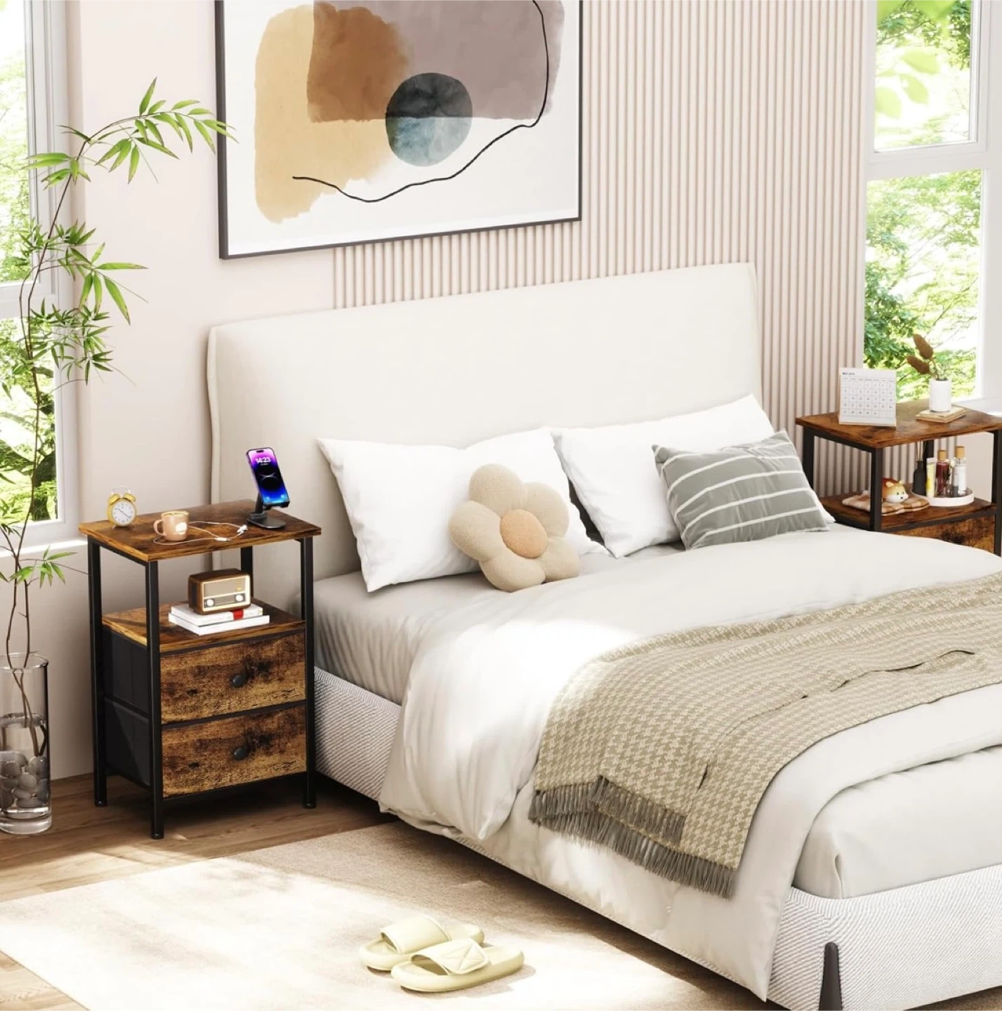 Cozy Fabric Storage End Table with 2 Drawers