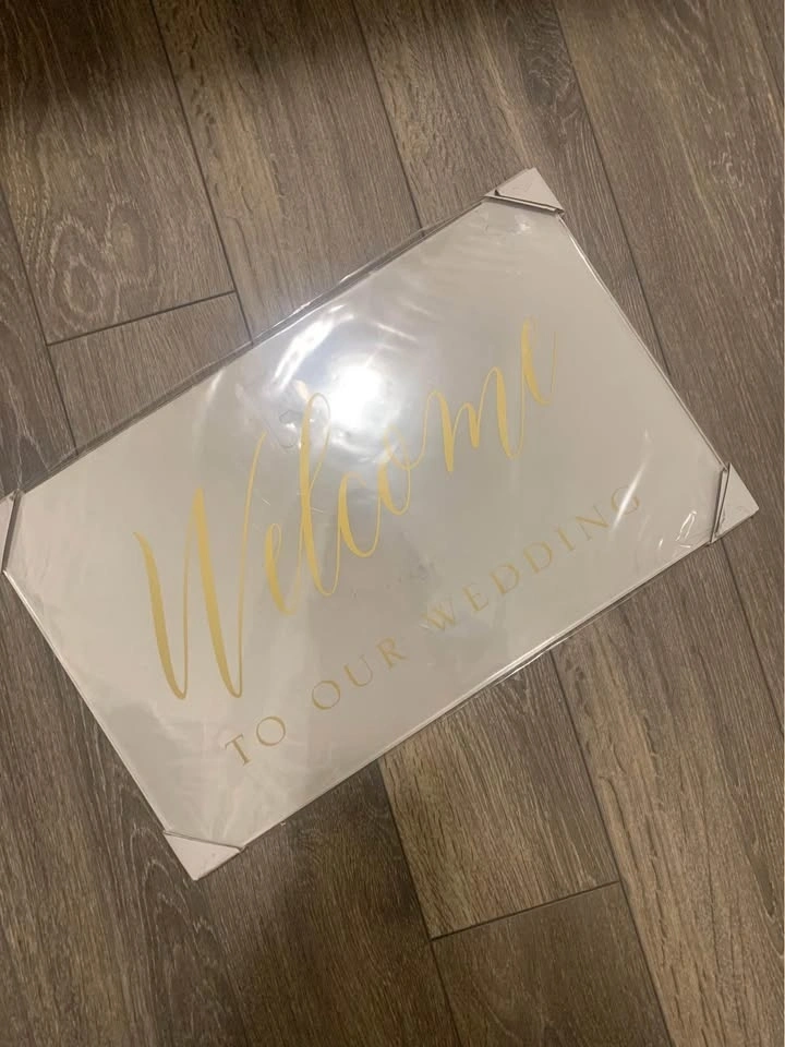 Buy & SellGold Plexi Welcome To Our Wedding SignGold Plexi Welcome To Our Wedding Sign$20Never opened transparent plexiglass "Welcome to our Wedding" sign with gold writing. Original price $59.99. Pickup near Whites & Finch in Pickering.WHERE TO MEETCheck LocationView MapSELLERverifiedBriDunbarton650 reviews0 chats·0 favorites·9 viewsSEND CHAT TO SELLERHi Bri! I’m interested in your listing.Hi Bri! I’m interested in your listing.Get the Karrot app to chatSign In to chat