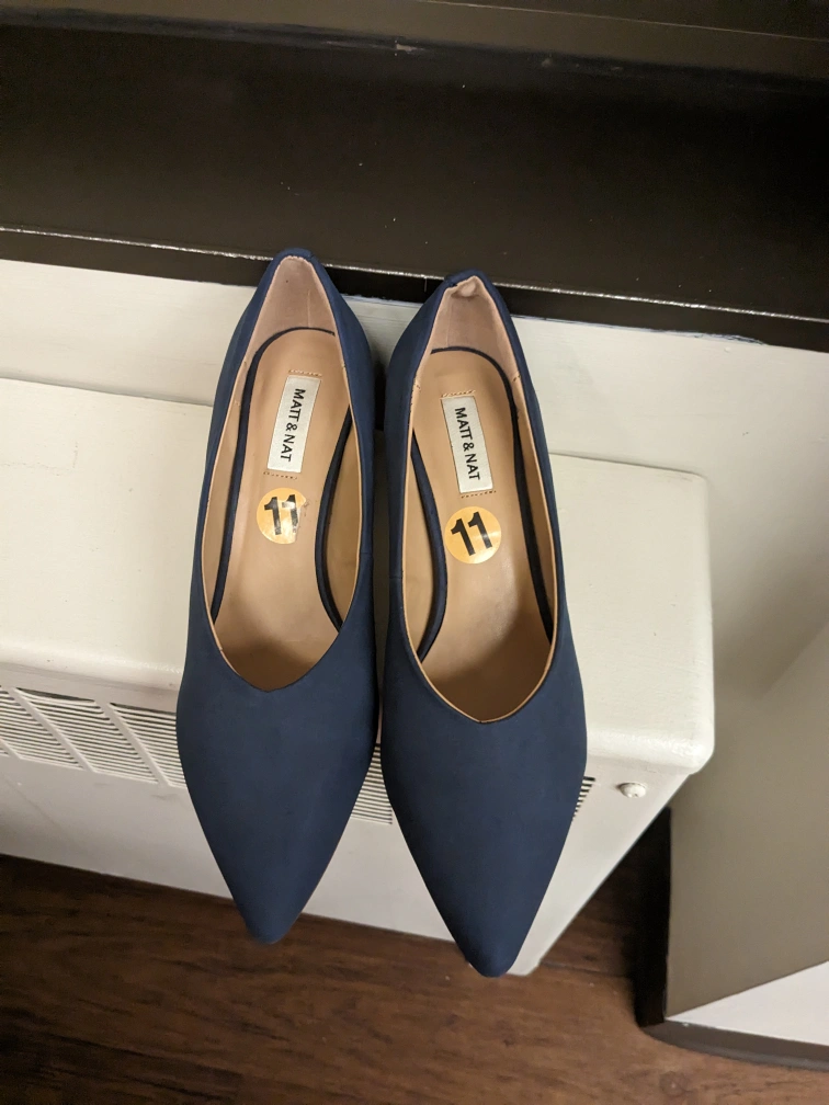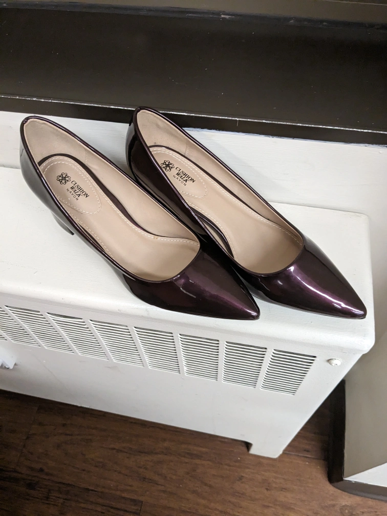 selling two pairs of ladies dress shoes. brand new, size 10. colour suede sky matt & bat and burgundy cushion walk by Anon