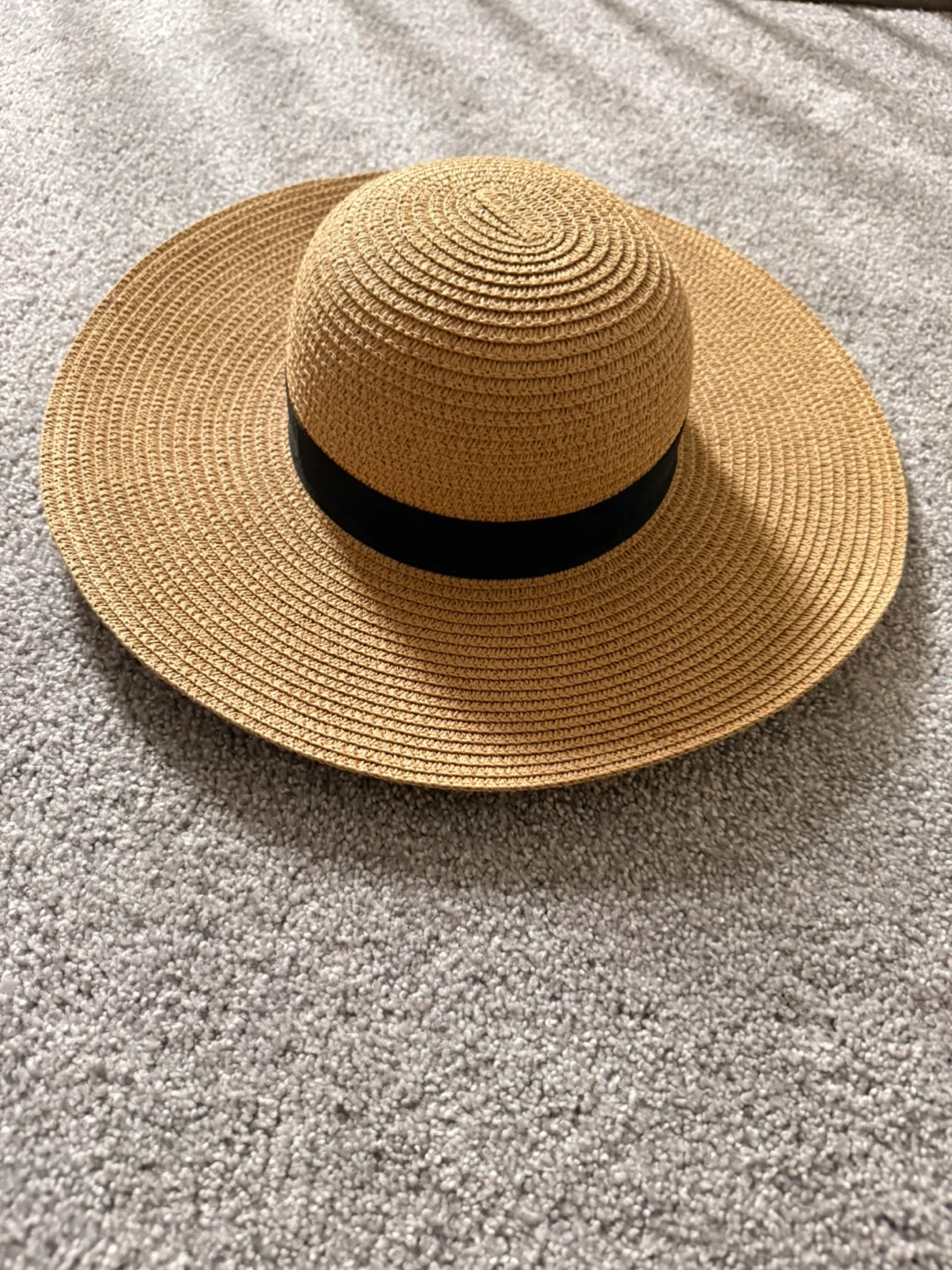 Straw Sun Hat with Black Ribbon and dress