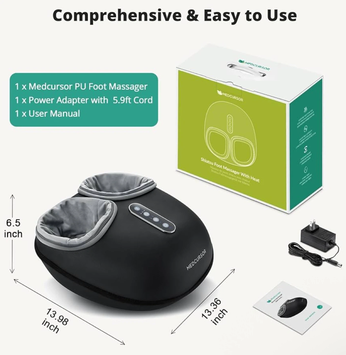 Medcursor Electric Shiatsu Foot Massager with Heat β Deep Kneading & Air Compression!