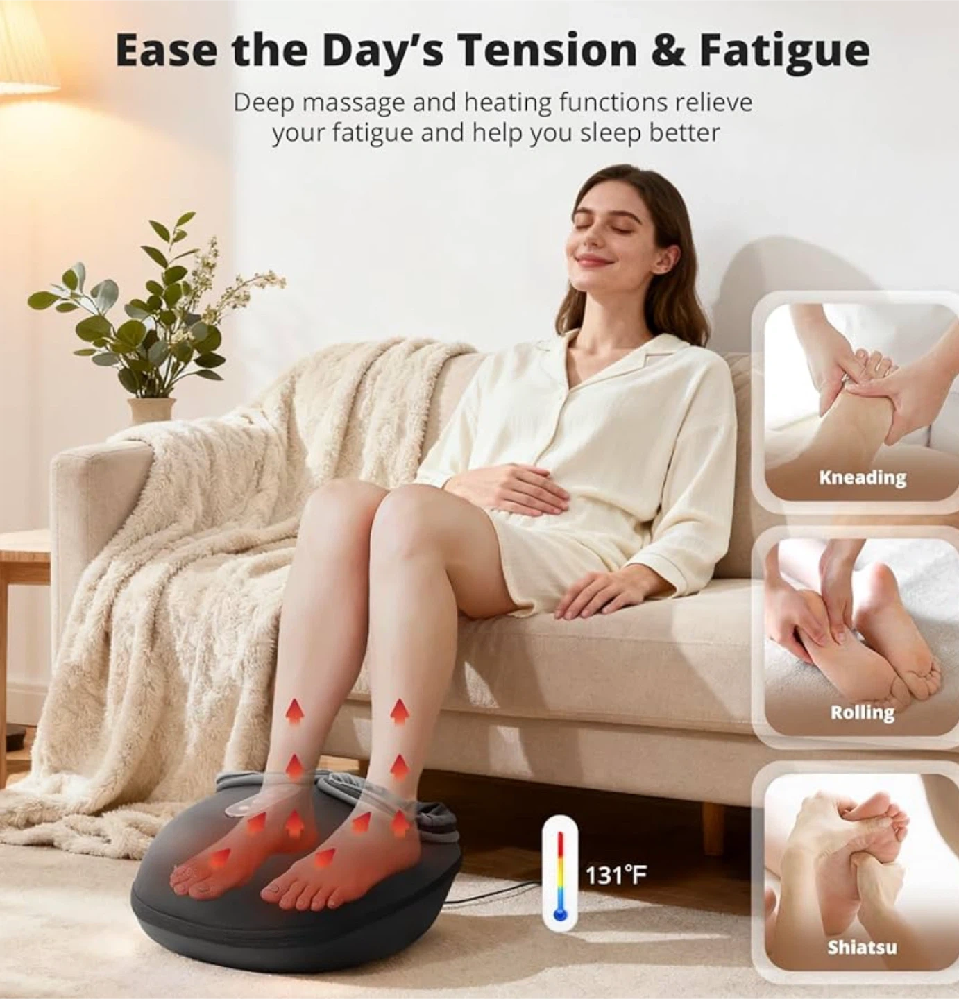 β’ π£ Deep Shiatsu Kneading Massage β Targets sore muscles and foot pain.