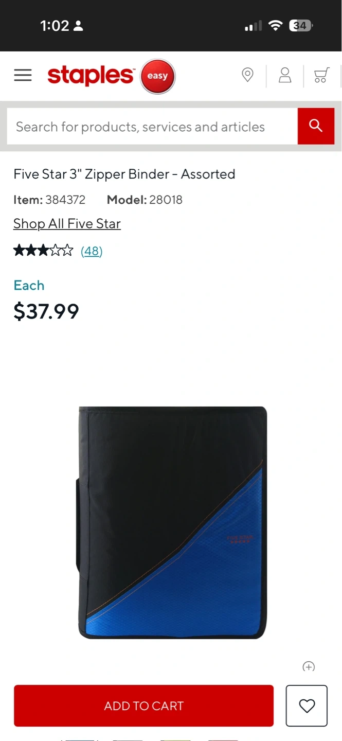 This Five Star zipper binder offers 3-ring capacity with a 3-inch fixture. It includes a mesh zipper pocket and extra storage pockets. The binder is sized at 13 3/4 inches by 11 inches.