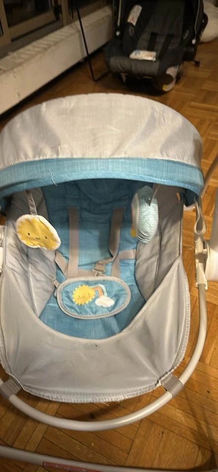 Gentle baby swing with soothing motions. It's made with comfortable fabric and includes overhead toys for entertainment. Suitable for little ones needing a calm space. Could give you a discount if you get more than one item! Cash on pick up only please.