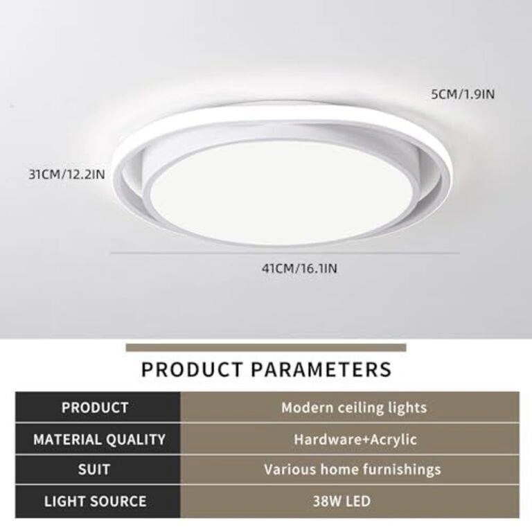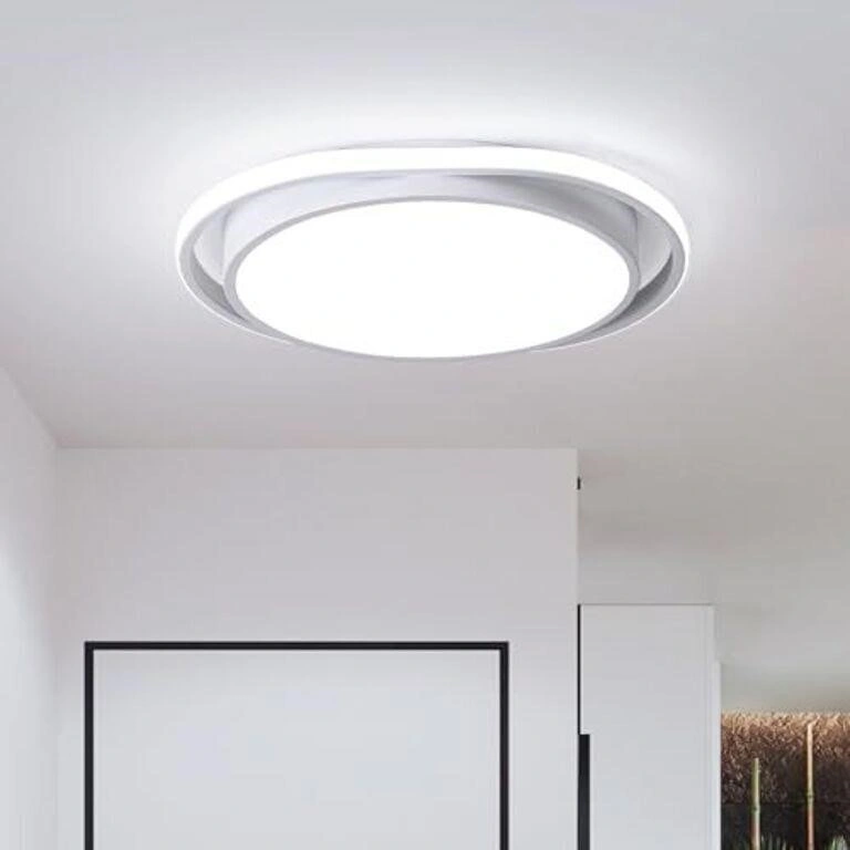 Stylish ceiling light, circular design. White finish. Acrylic and hardware construction. 38W LED light source. Suitable for various home decors.