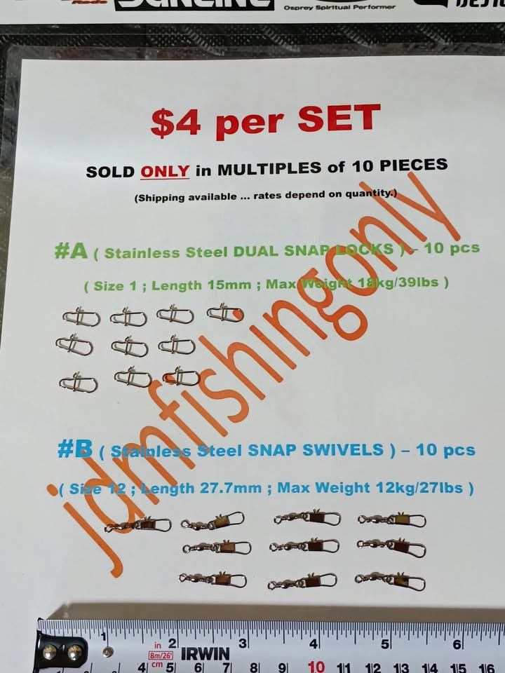Stainless Steel Dual Snap Locks & Snap Swivels ... as pictured