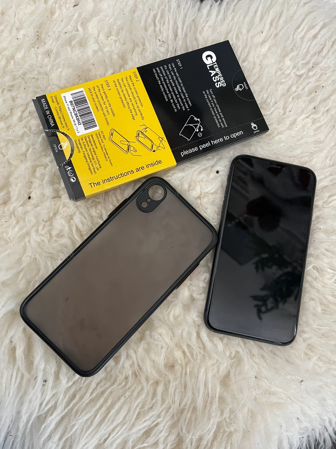 Selling a black iPhone XR, 256GB, comes with a phone case and 2 brand new tempered glass screen protector. It's in good condition and ready for a new owner!