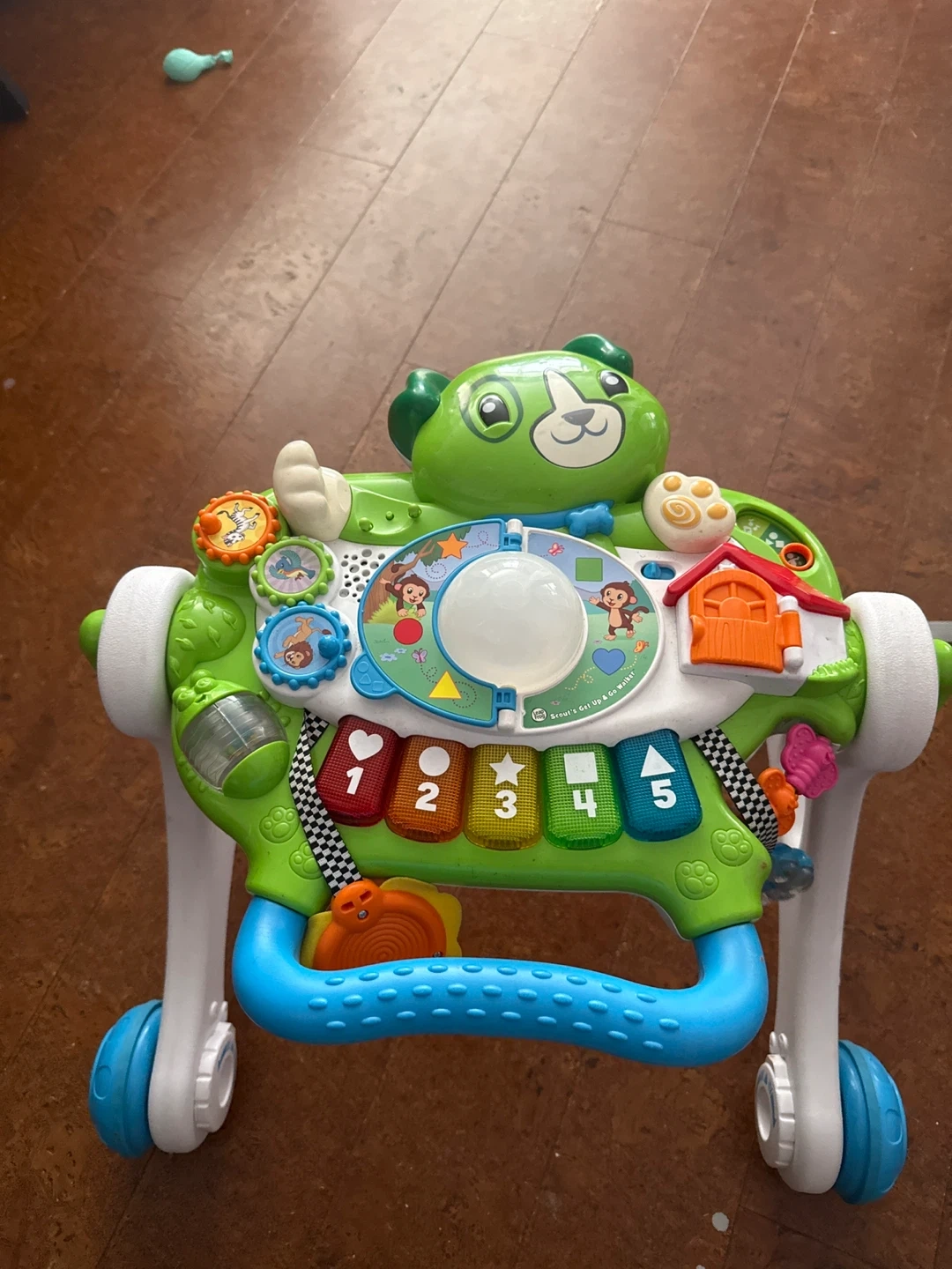 This LeapFrog activity walker is designed to help little ones learn and play. It features a piano keyboard, spinning gears, and colourful buttons for interactive fun. It's great for babies just learning to stand and take their first steps!