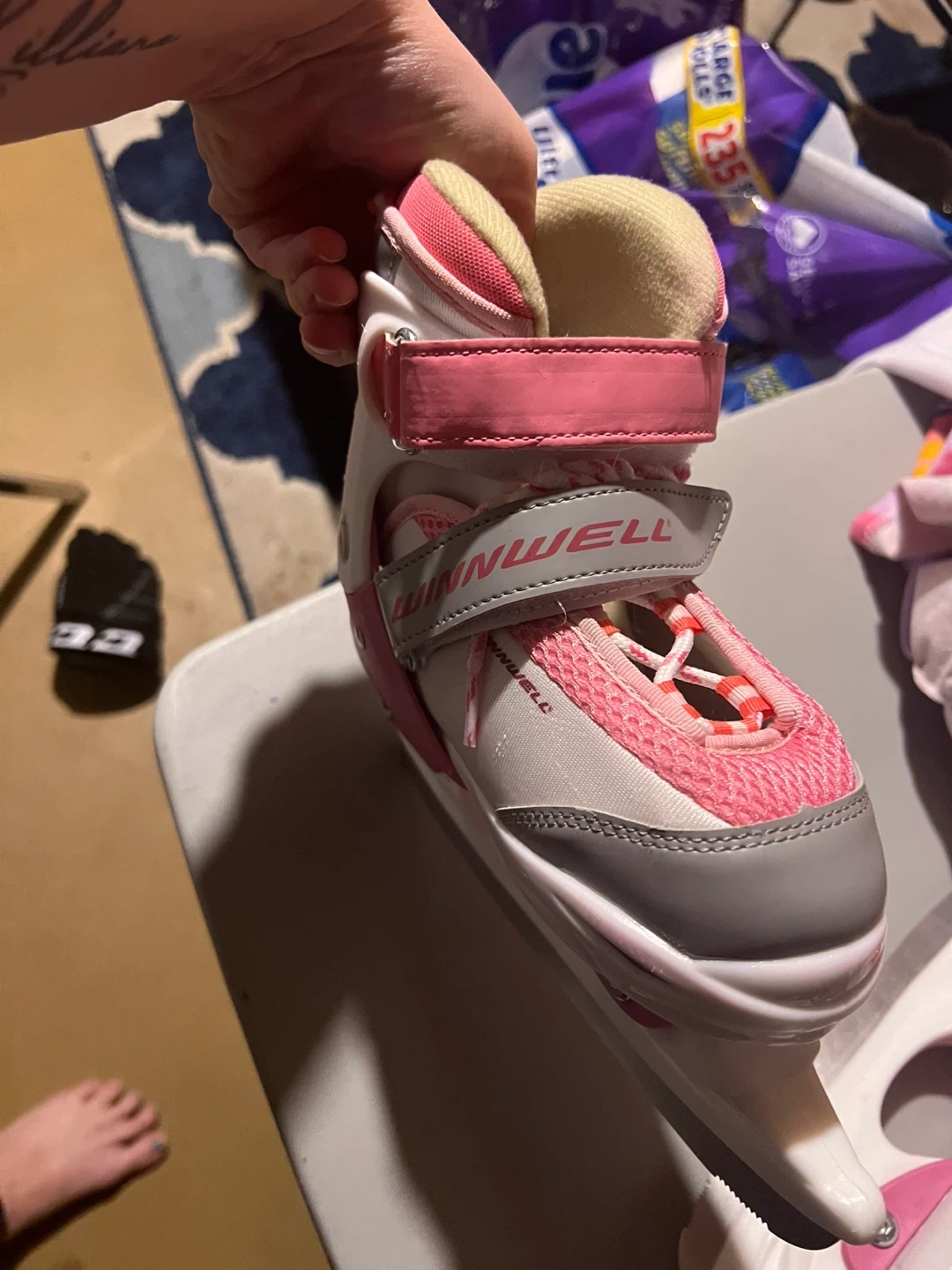These pink and white Winnwell youth ice skates are adjustable for a growing foot. They feature a supportive boot and secure straps for stability. Size is 2Y. Paid $99 asking $75. Only used 4 times