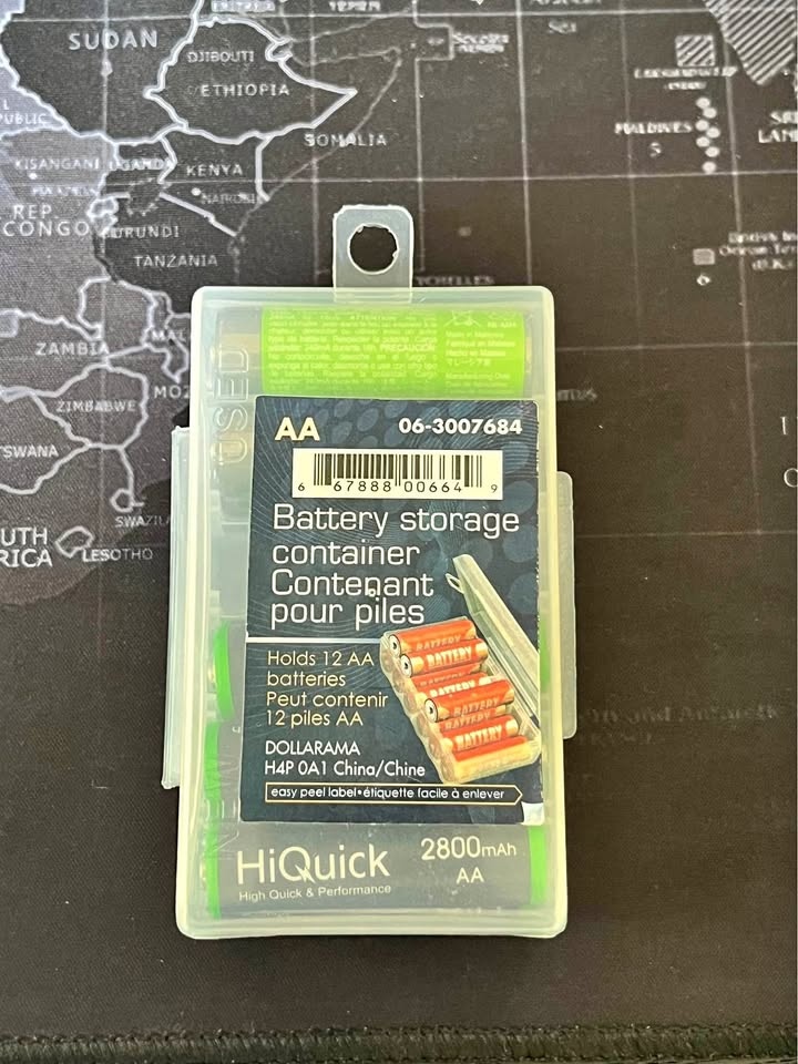 Free with any other purchase from my page. No longer need, batteries not included. 1x AA and 2x AAA containers. Small chip in the corner of the AA container but does not impair functionality. Pickup in Ajax or Yonge & Eglinton.