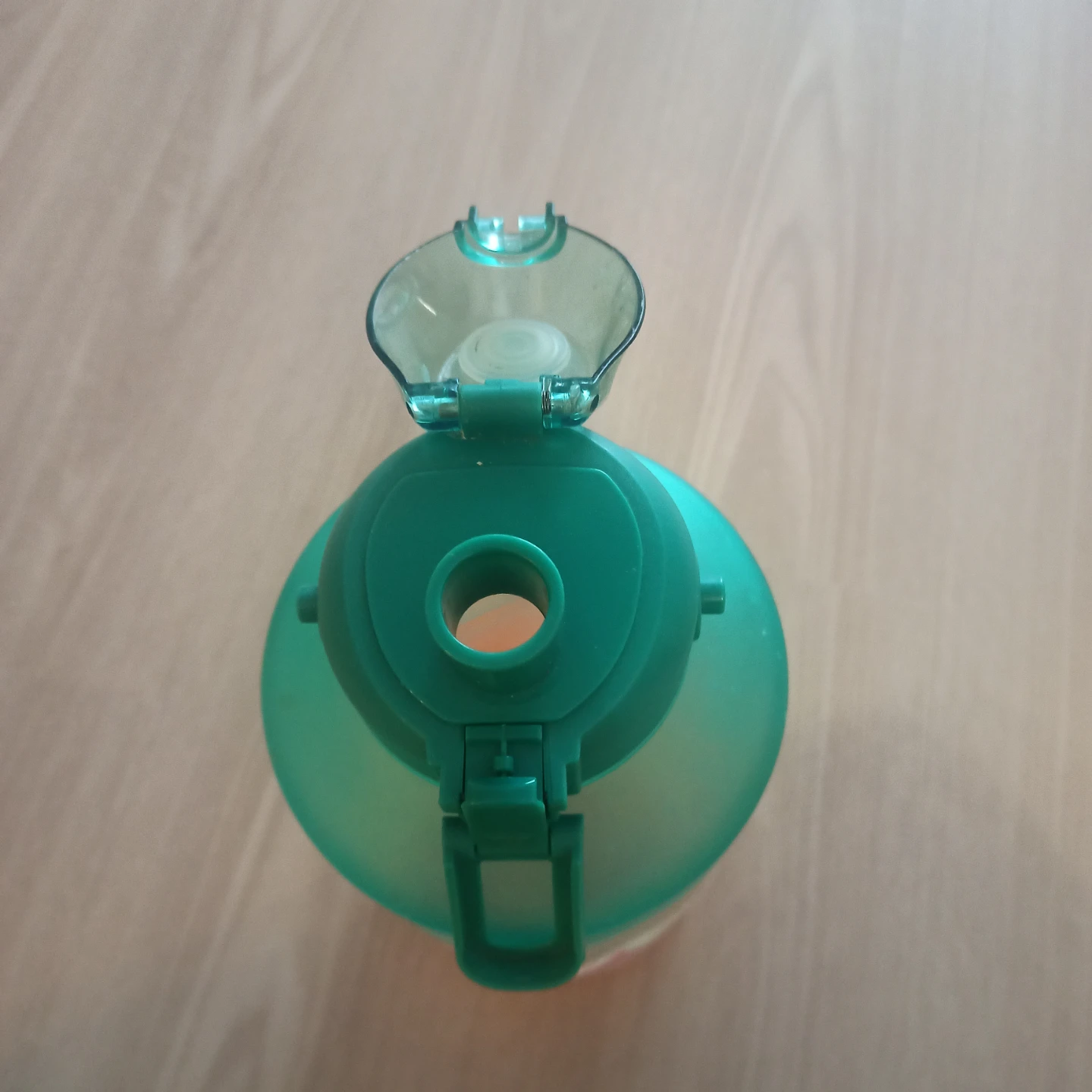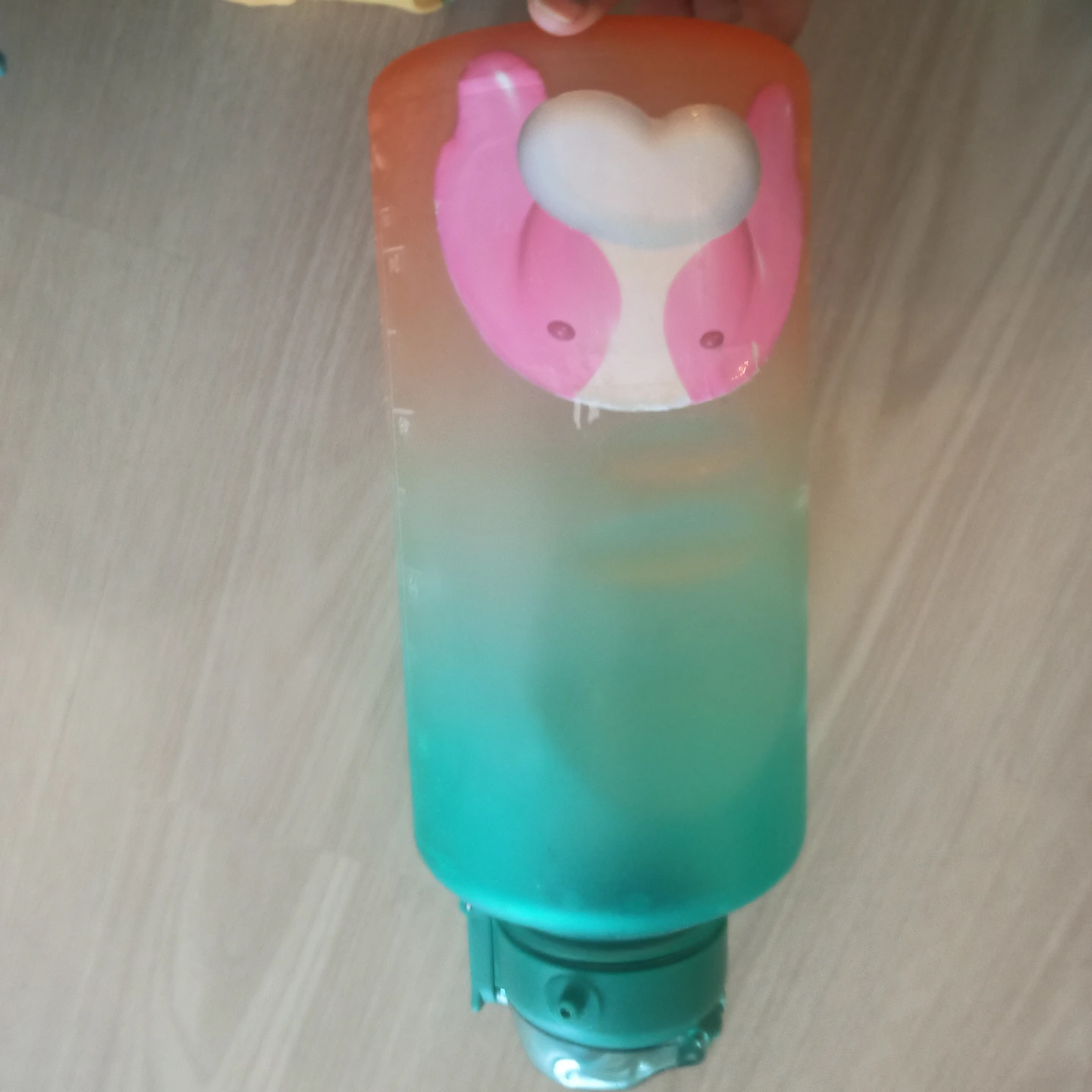Selling a 2L water bottle! It features a gradient from green to orange, and has time markings to help you stay hydrated throughout the day. It's in great condition and ready for a new owner!