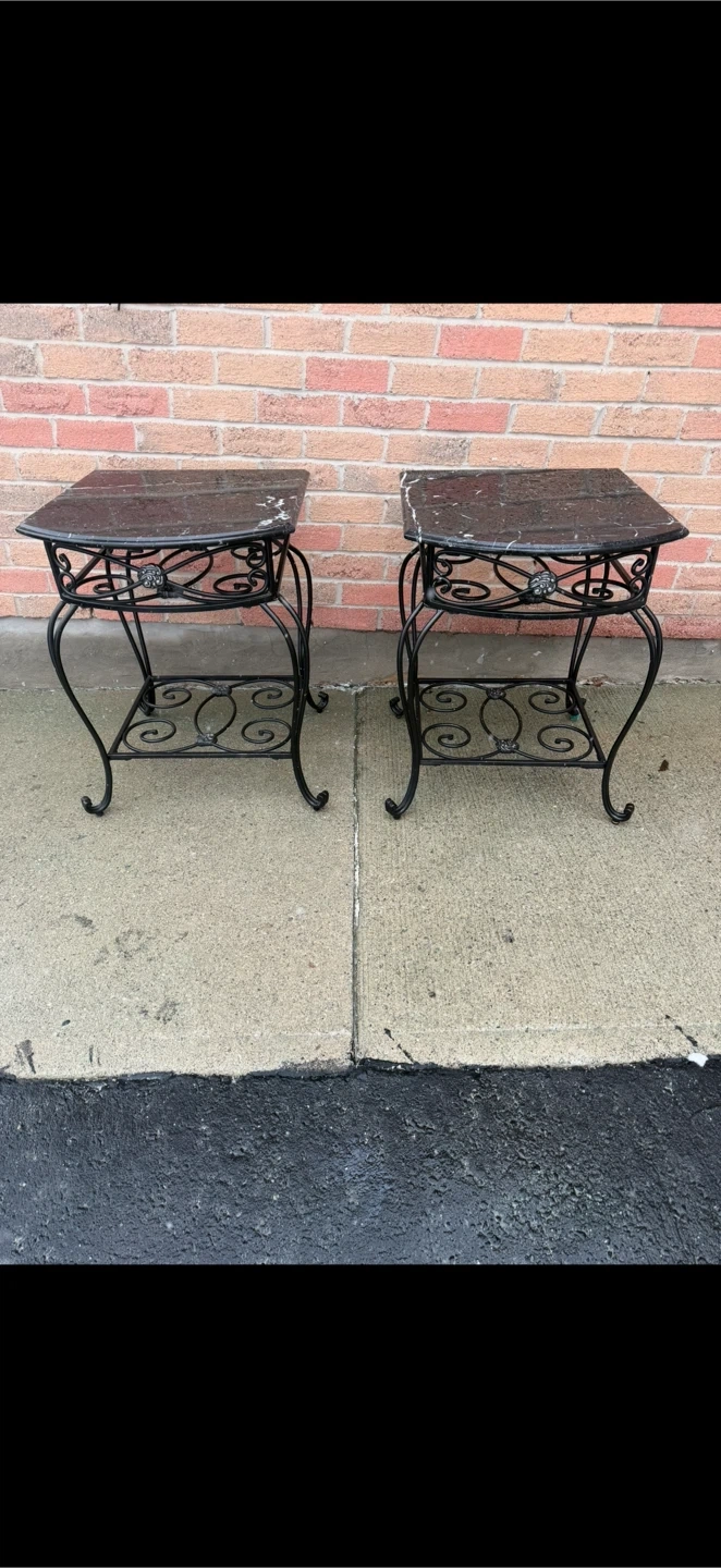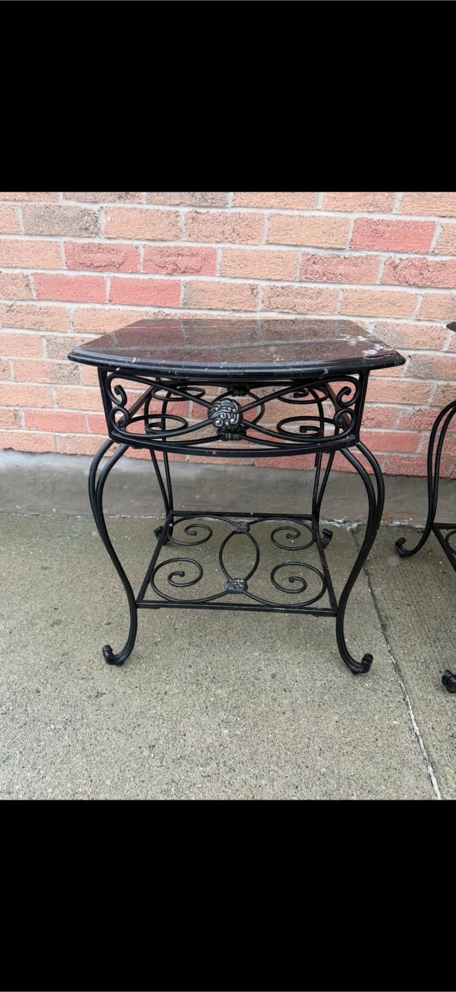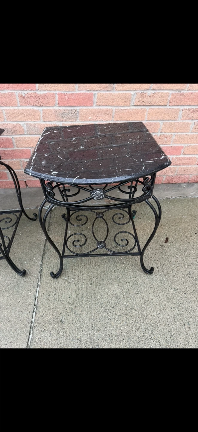 2 Piece Set - Black Marble Side Tables