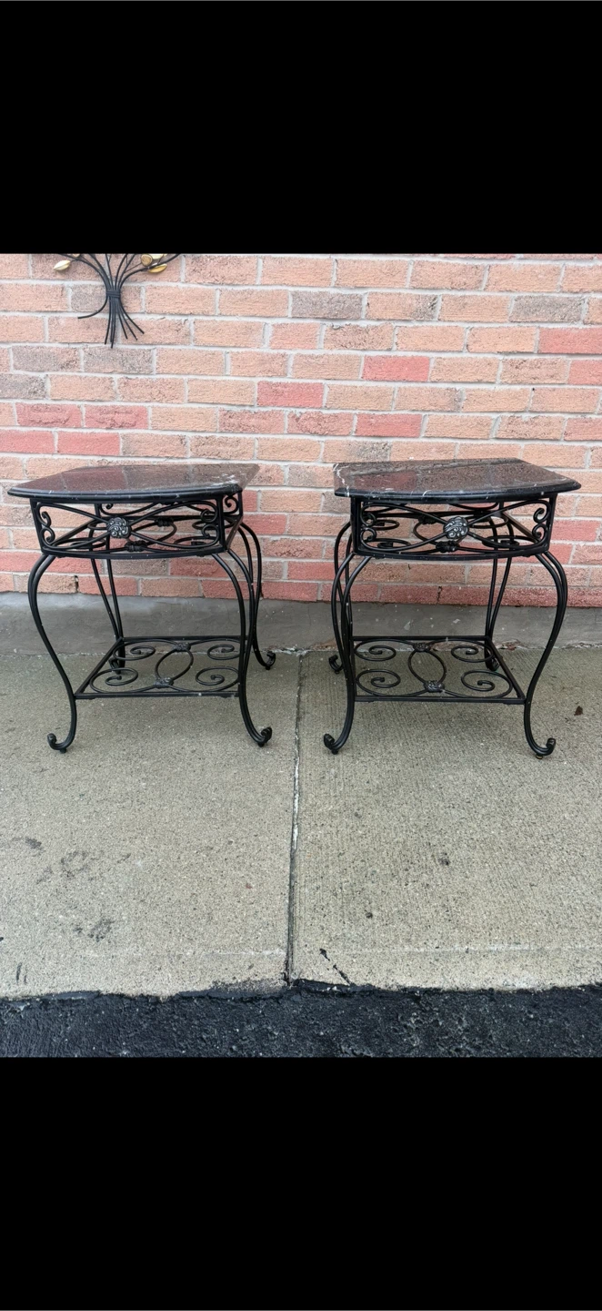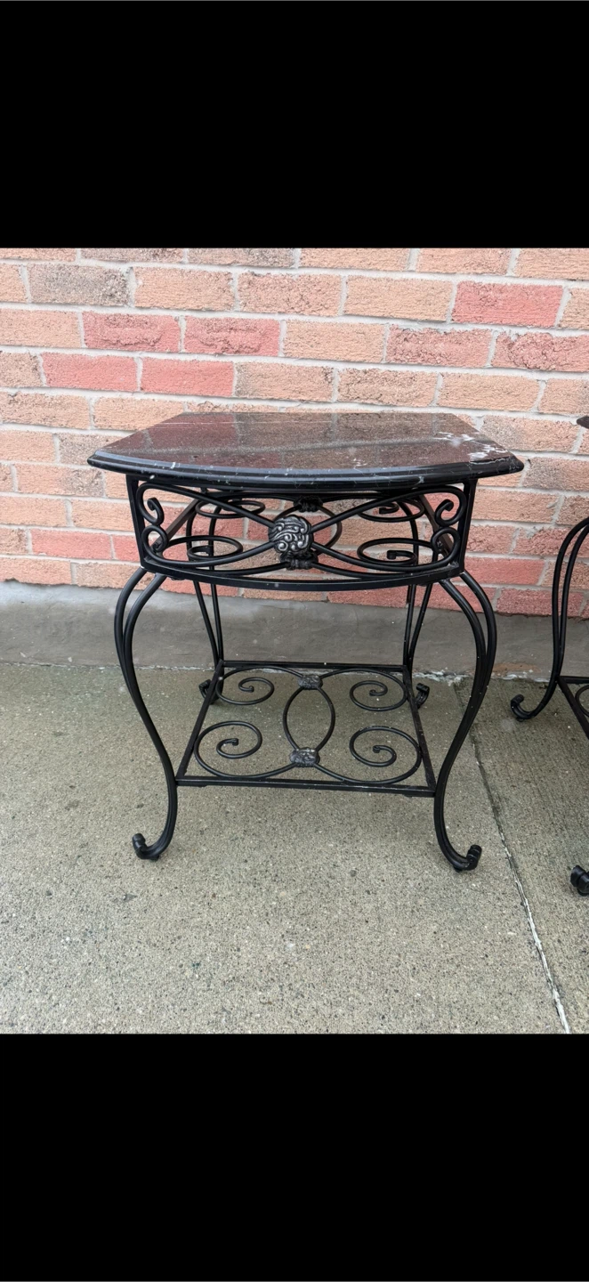2 Piece Set - Black Marble Side Tables
