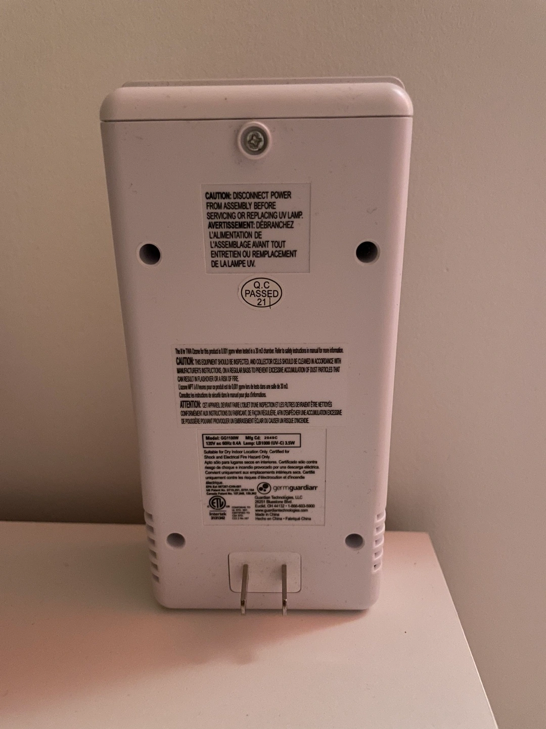 Barely used GermGuardian UV-C Air Sanitizer. Compact design. White colour. Good for small spaces. Retails for $56.99 at Canadian Tire: https://www.canadiantire.ca/en/pdp/germguardian-gg1100w-portable-plug-in-uvc-air-purifier-sanitizer-removes-odours-germs-white-small-room-0438631p.html?rq=germ+guardian