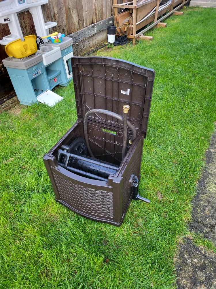 Buy & SellHose Reel Storage BoxHose Reel Storage Box$5Brown plastic hose reel storage box. Holds a garden hose. Features a lid and built-in reel.ConditionGoodDimensions2"0 x 2"0WHERE TO MEETCheck LocationView MapSELLERverifiedQuintonCariboo Armstrong14910 reviews1 chats·1 favorites·24 viewsSEND CHAT TO SELLERHi Quinton! I’m interested in your listing.Hi Quinton! I’m interested in your listing.Get the Karrot app to chatSign In to chat