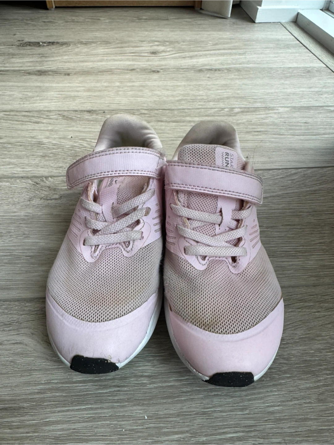 Selling a pair of Nike Star Runner 3 girl’s sneakers in pink. They are size 13. Used condition (washed by owner). Great for active kids!