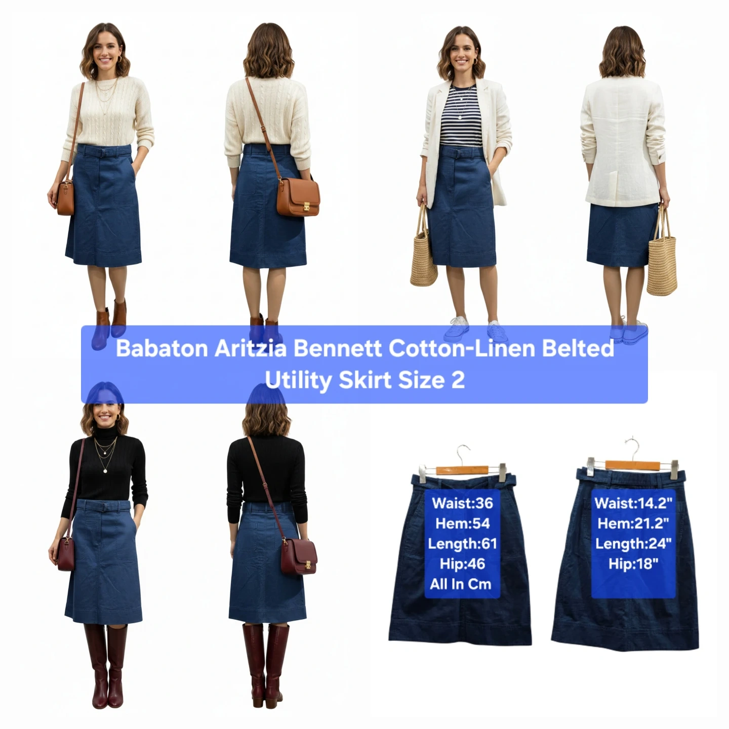 Fit Tip: This is a tagged Size 2. While the flat waist measurement is 14.25" (approx. 28.5" total circumference), this is standard for Babaton’s structured cotton-linen blend. This "ease" ensures you can sit and move comfortably in a non-stretch fabric