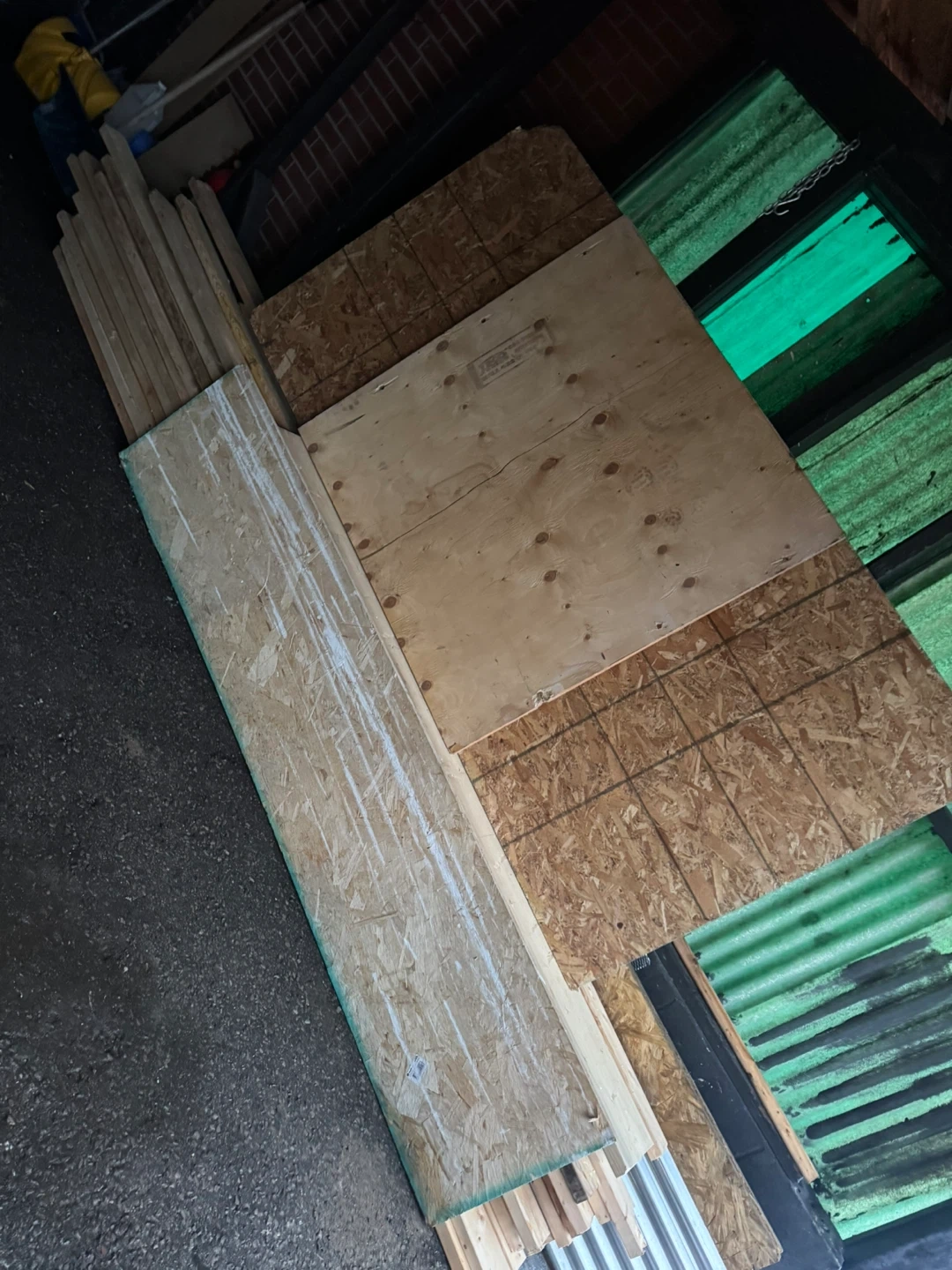 Bundle of assorted lumber and plywood sheets. Great for construction or renovation projects. Includes various lengths of dimensional lumber and several sheets of plywood.