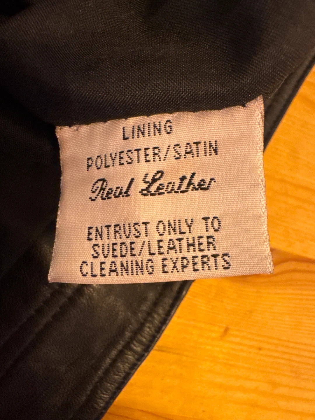 ARM'S brand black leather pants. Lined with polyester/satin. Size is 34. Entrust only to suede/leather cleaning experts.