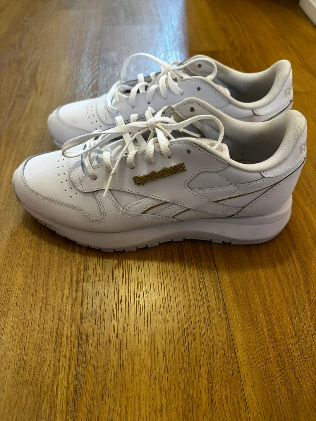 Selling a pair of Reebok Classic Leather shoes in white! These are in great condition and perfect for everyday wear. The classic design is timeless and goes with everything. Size is women's, please check the photos for more details on sizing and condition