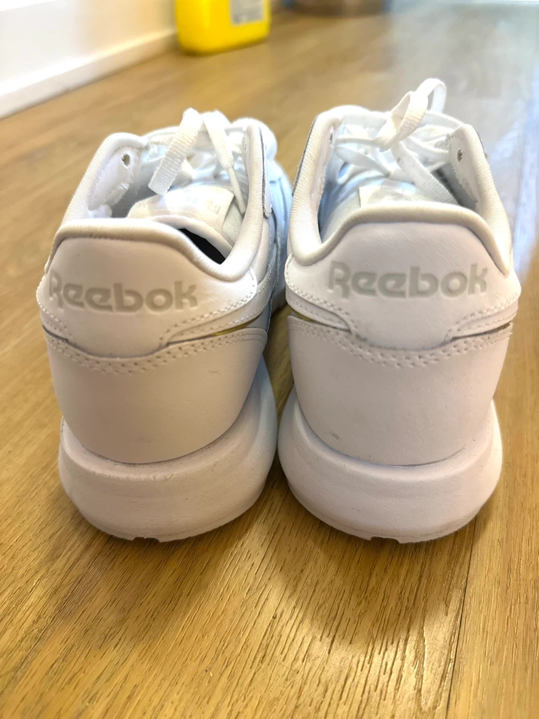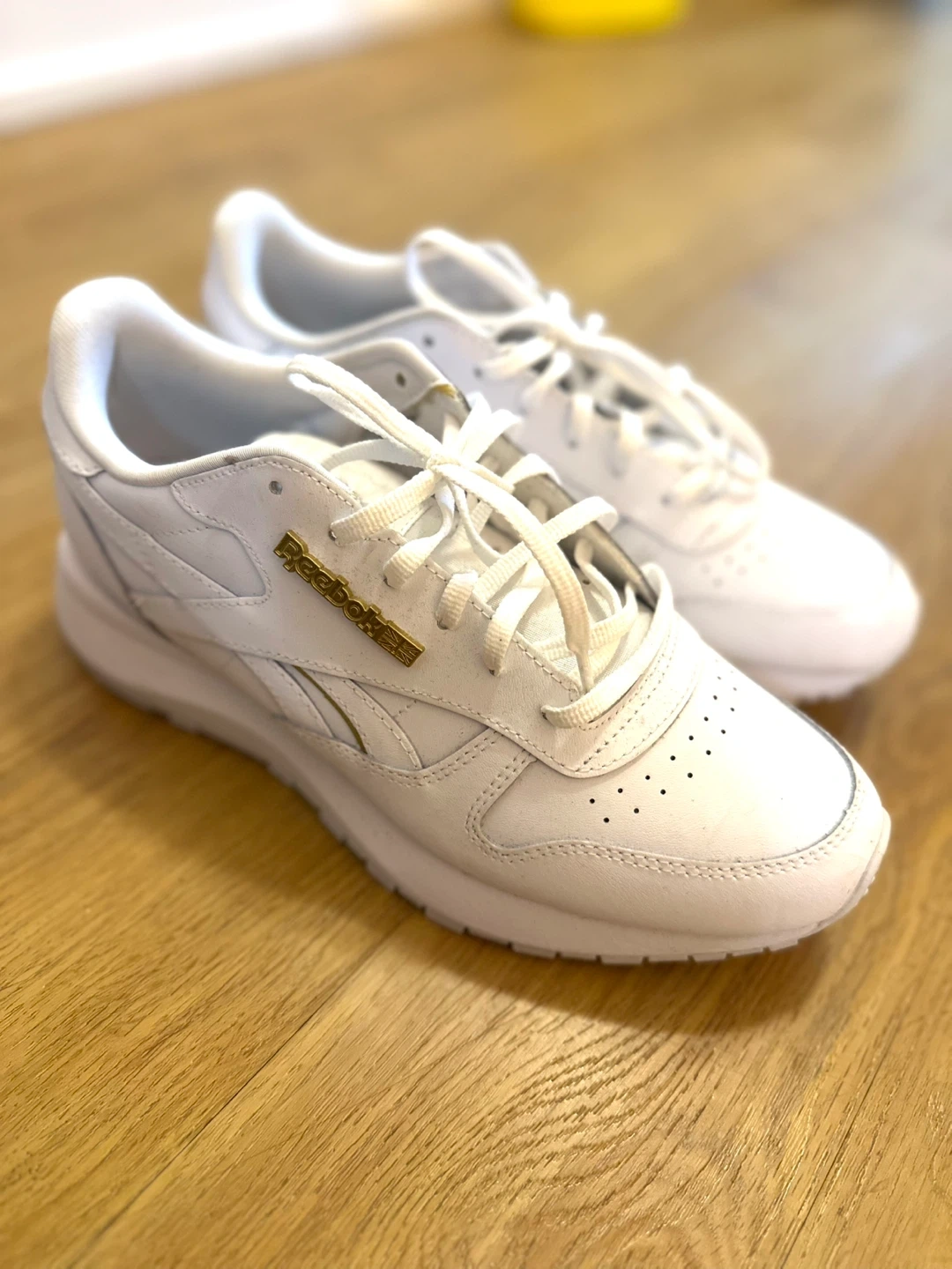 Selling a pair of Reebok Classic Leather shoes in white! These are in great condition and perfect for everyday wear. The classic design is timeless and goes with everything. Size is women's, please check the photos for more details on sizing and condition