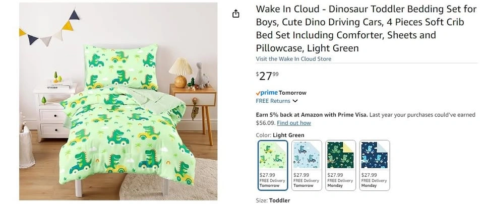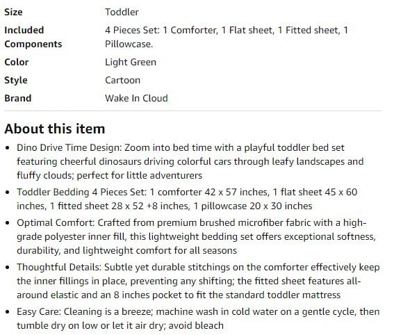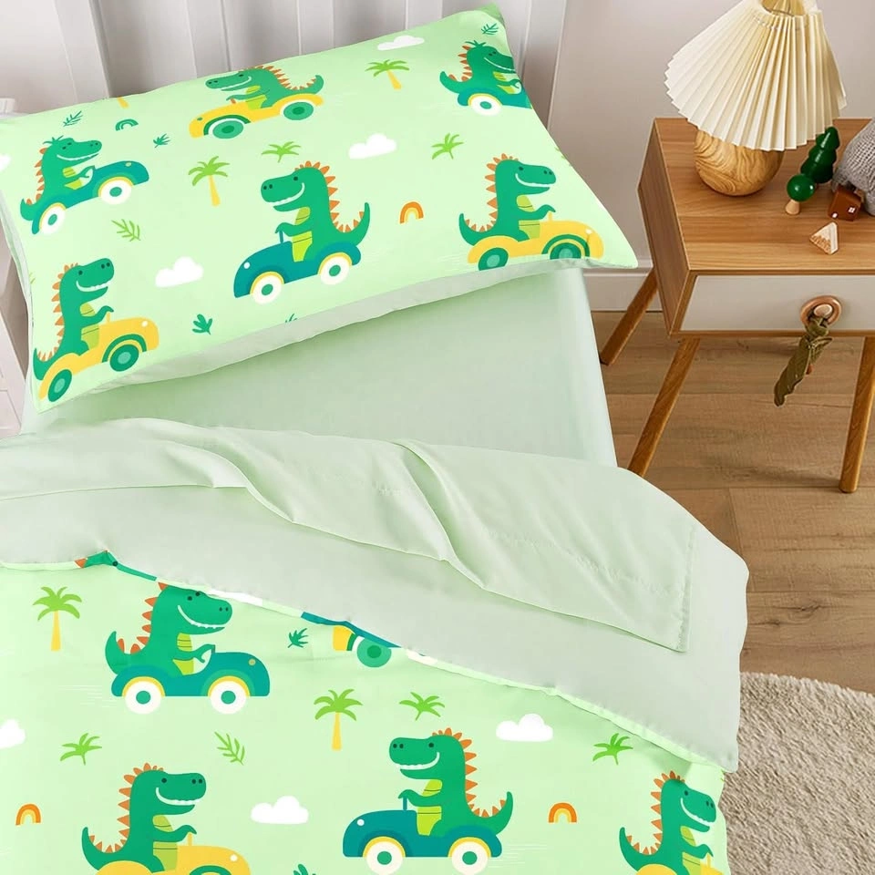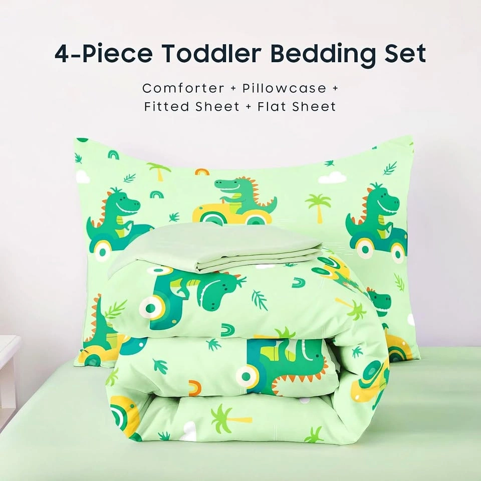 New~Soft Toddler Bed Set, Dino Driving Cars(4 PC Set)