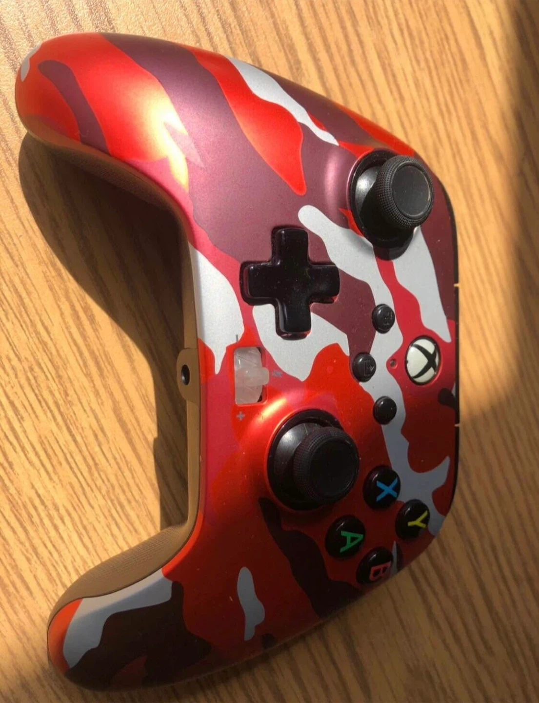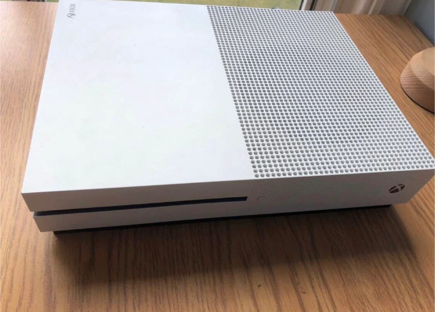 Selling an Xbox One S console. Includes one white controller and one red camouflage controller. Great for gaming! With 5 games