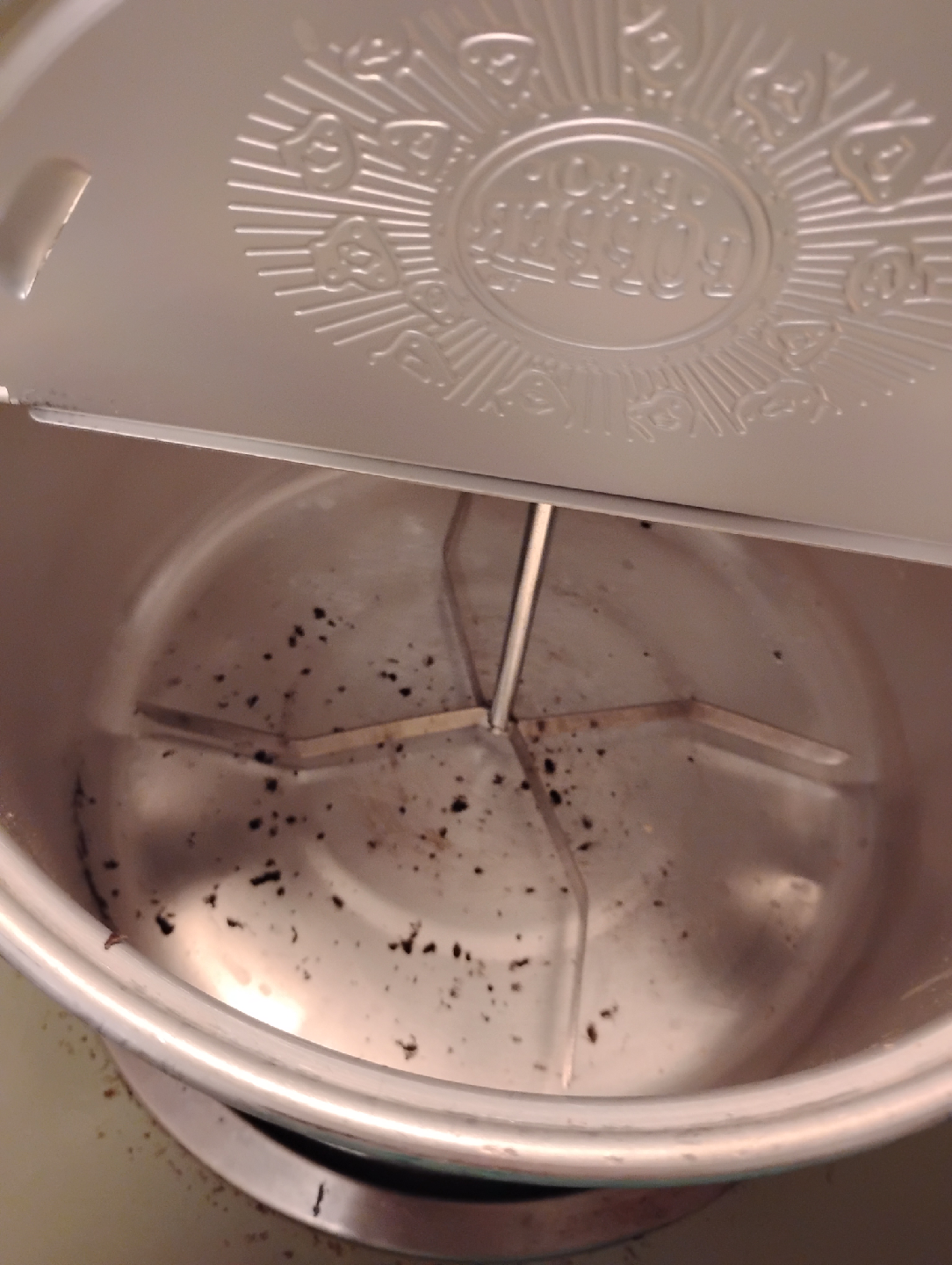 HAS BEEN USED, SOMEBODY BURNT A BATCH IN IT AS YOU CAN SEE IN THE LAST PHOTO. I HAVE SCRUBBED THIS AND THE BLACK IS STUCK ON WELL! WILL NOT COME OFF WHEN MAKING A BATCH OF POPCORN.