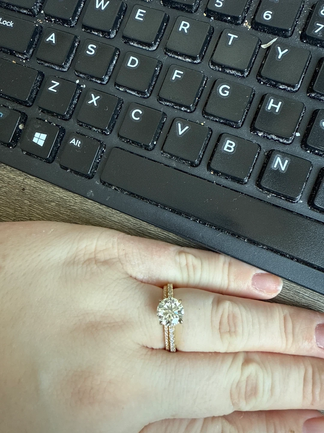 Elegant engagement ring set crafted from pure 925 sterling silver. The set includes an engagement ring with a large centre stone and a matching band. All of our jewelry is made by pure 925 sterling silver. The color retention time will be longer in good care!