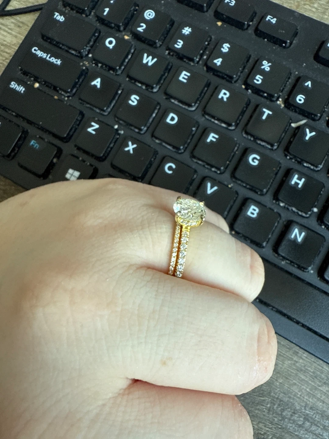 Elegant engagement ring set crafted from pure 925 sterling silver. The set includes an engagement ring with a large centre stone and a matching band. All of our jewelry is made by pure 925 sterling silver. The color retention time will be longer in good care!