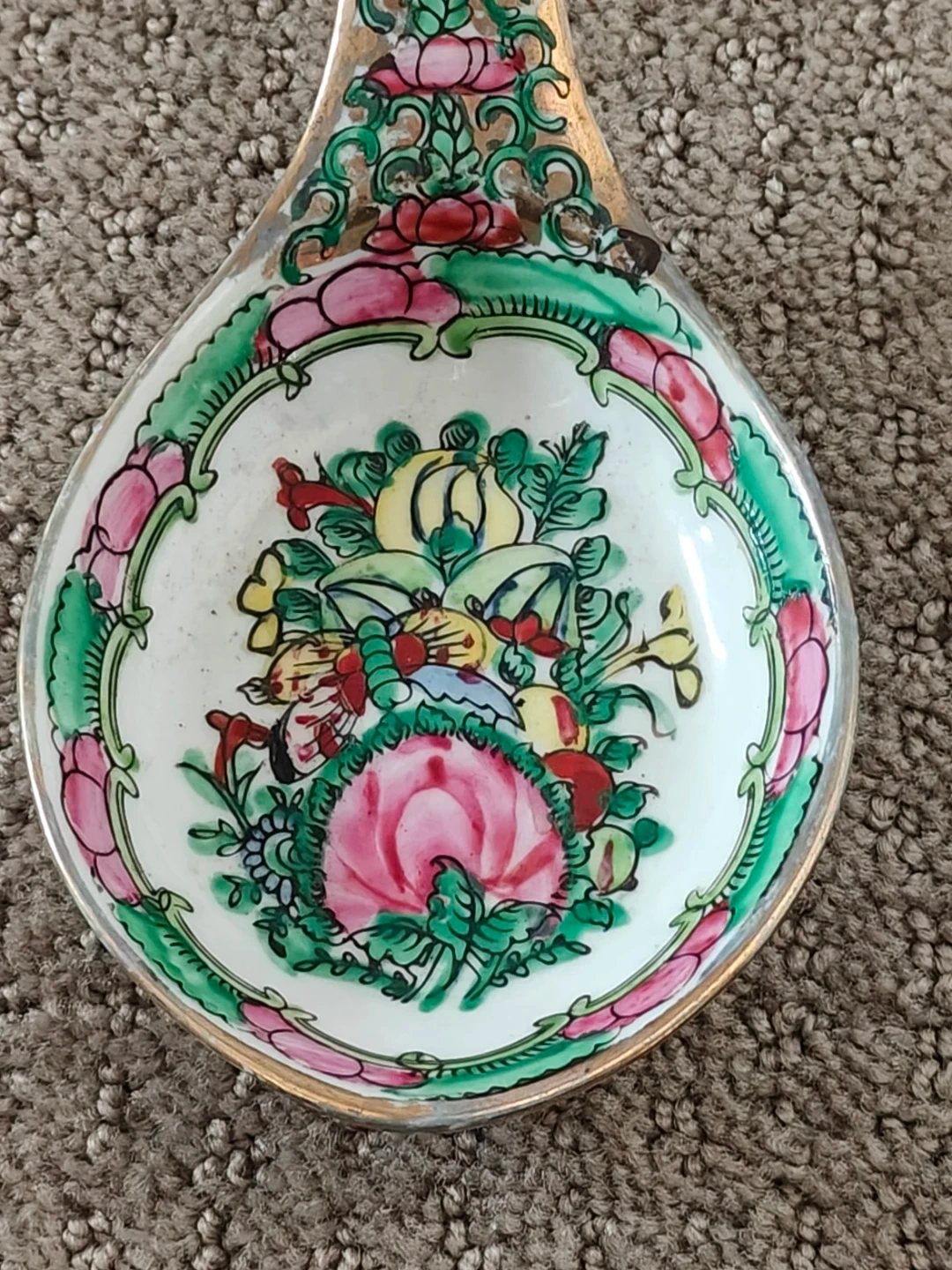 Large Vintage Chinese Rose Canton Porcelain Serving Spoon - 8"