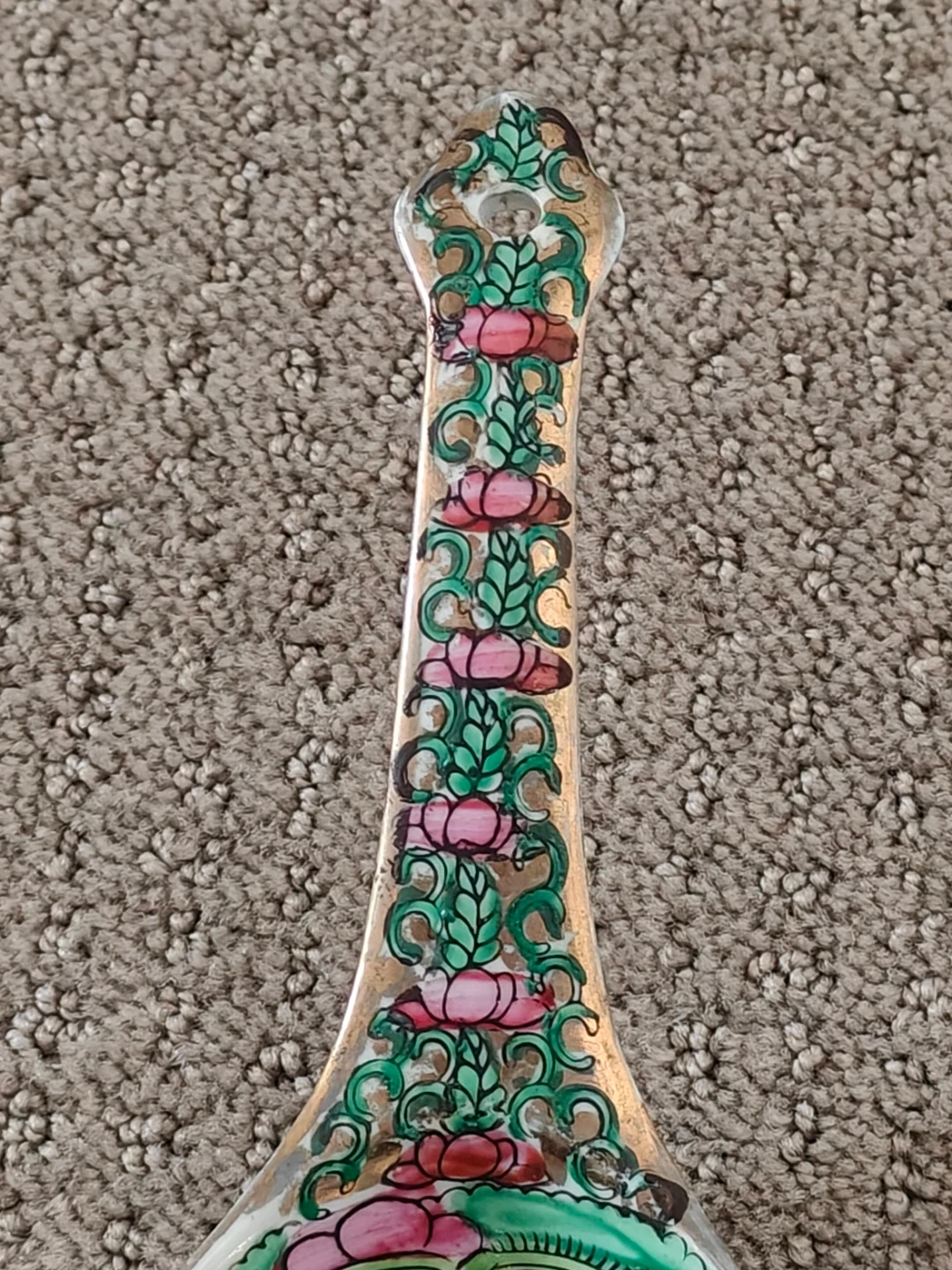 Large Vintage Chinese Rose Canton Porcelain Serving Spoon - 8"