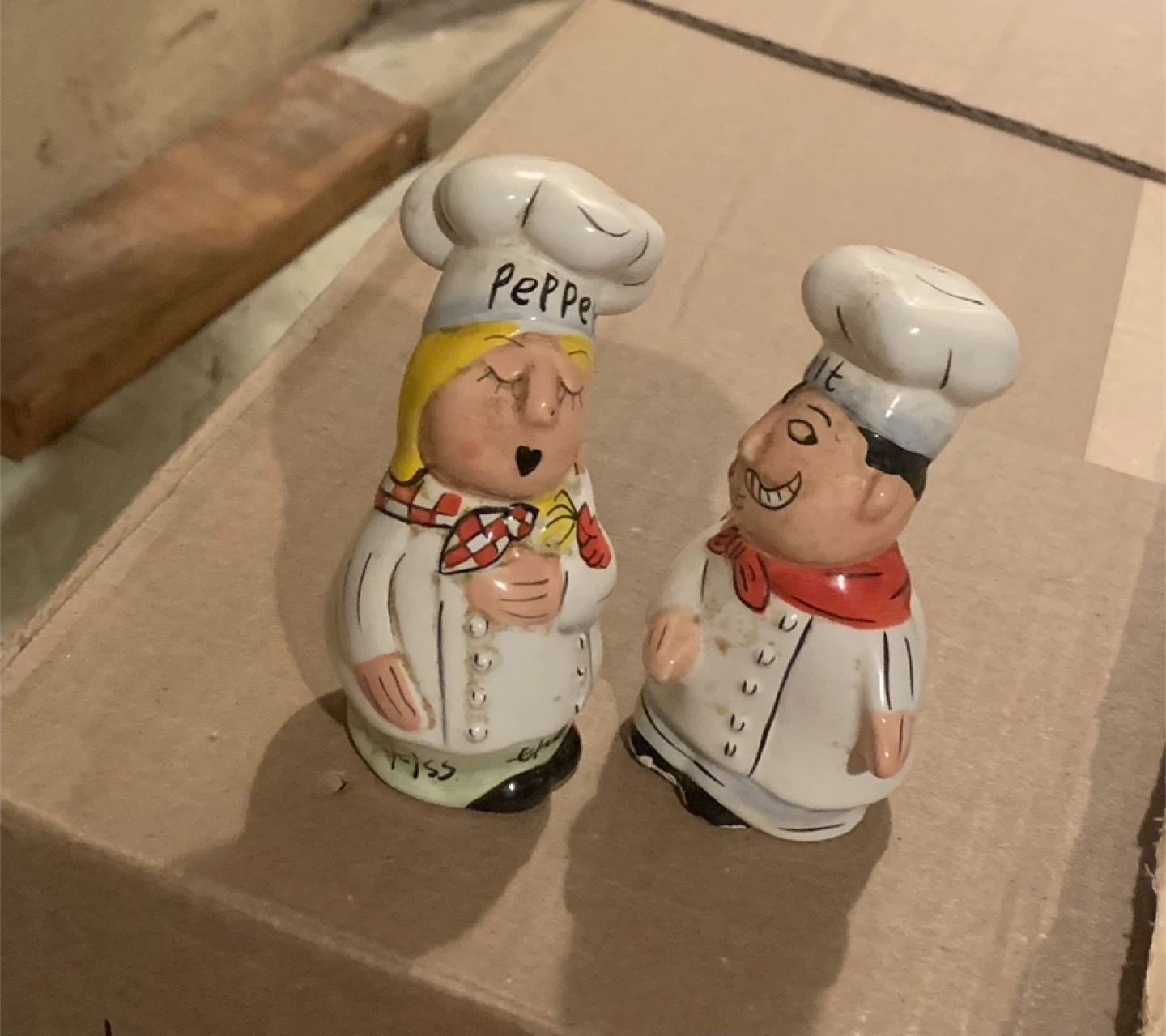 Cute chef-themed salt and pepper shakers! They're in good condition and ready to add some charm to your kitchen or dining table