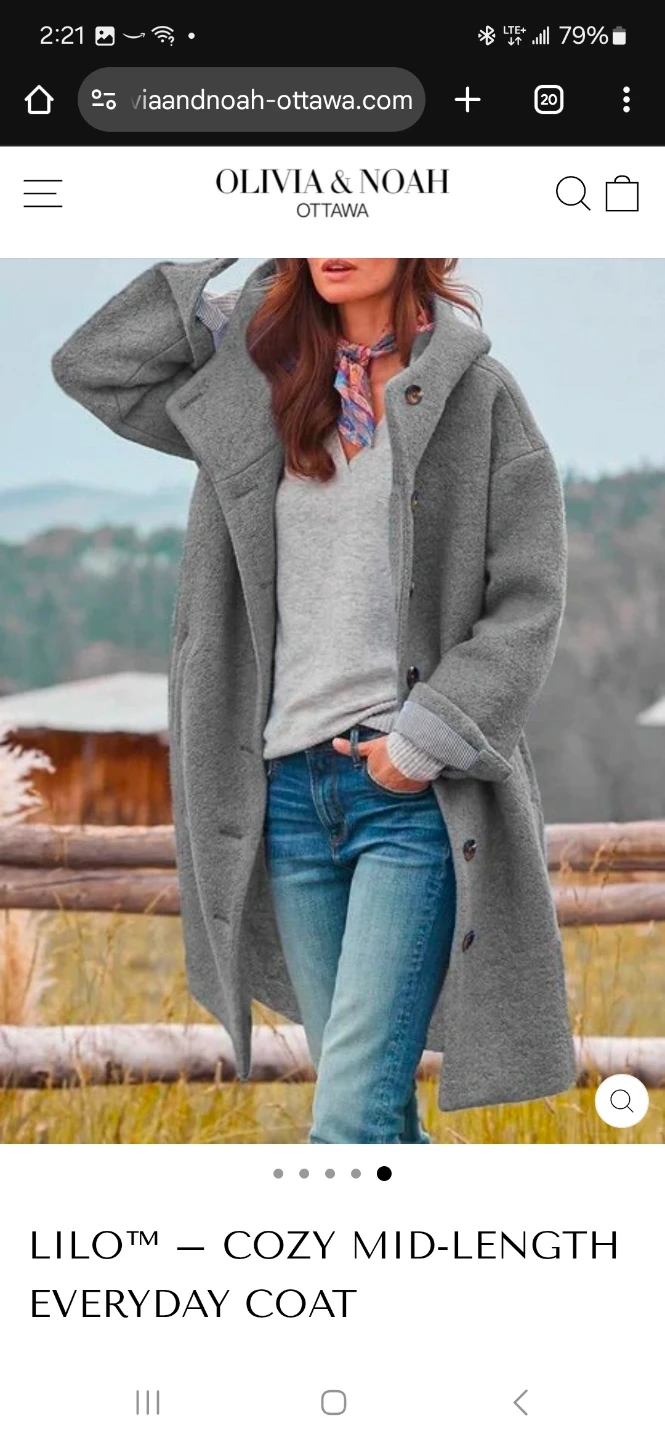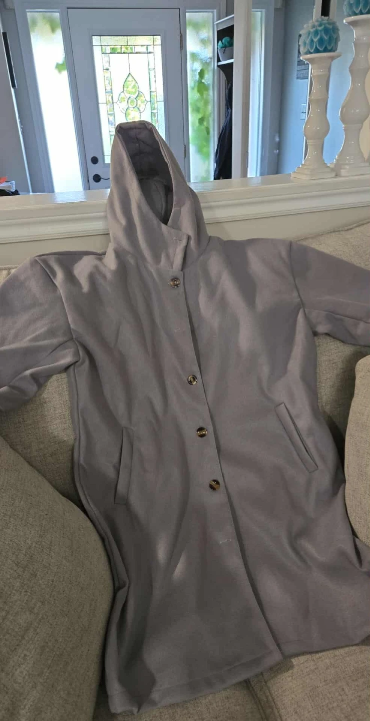 NEW Olivia & Noah Lilo cozy mid-length everyday coat. This hooded coat comes in a grey colour. It's designed for comfort and everyday wear.