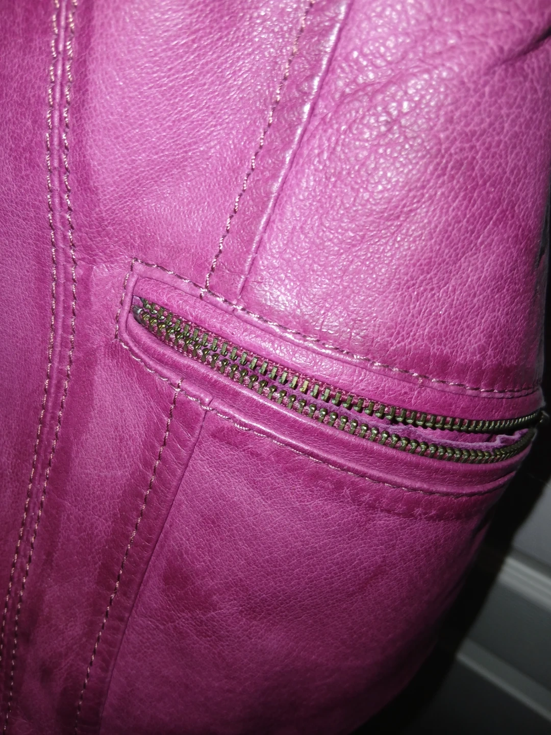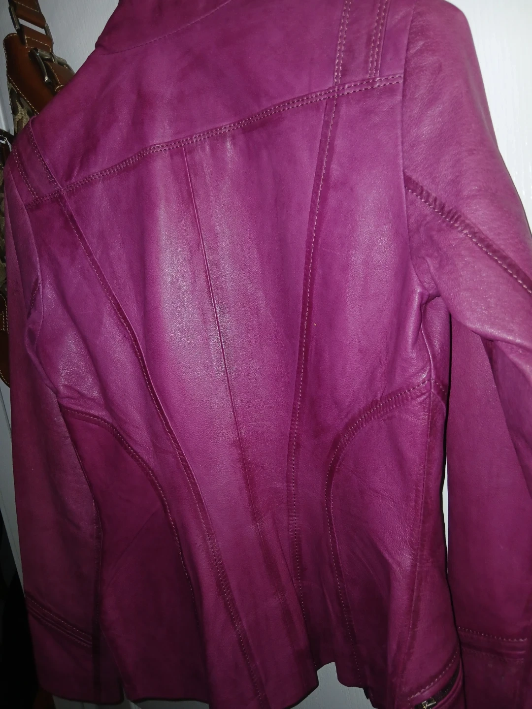 Here's a stylish Danier leather jacket in a lovely shade of purple! It's a size 3XS, perfect for petite frames. The jacket features a zippered front, pockets, and detailed stitching. It's in great condition and ready to add a pop of colour to your wardrobe