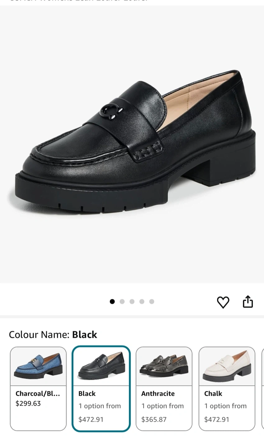 Coach Leah chunky sole leather loafers in black. Genuine leather material. Made in Vietnam. Size 10B US.