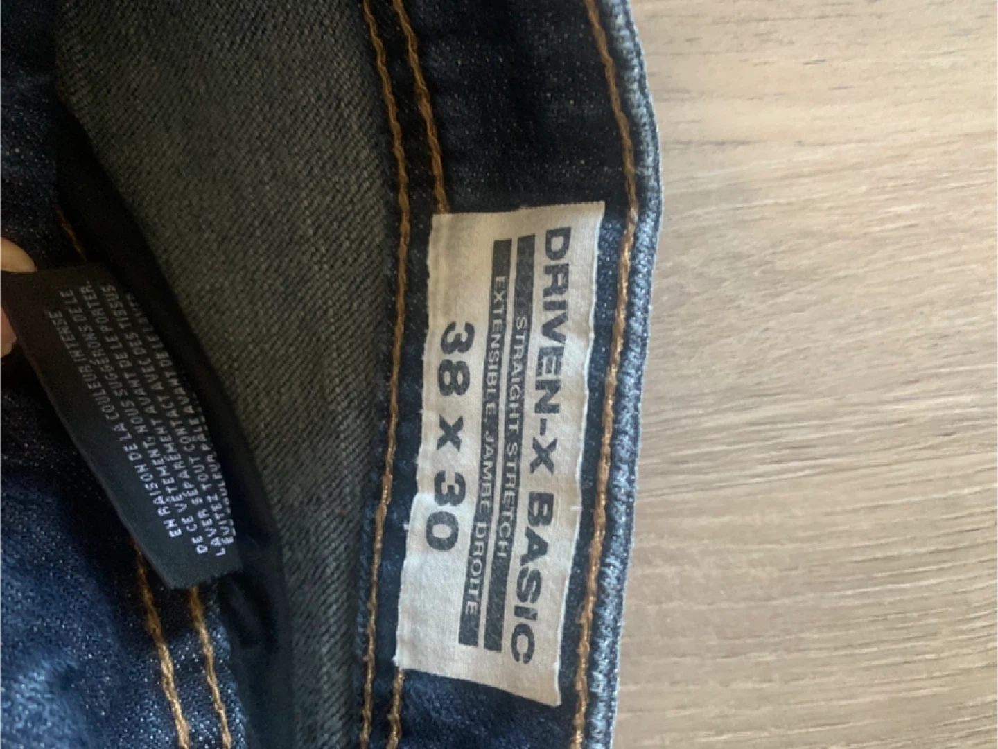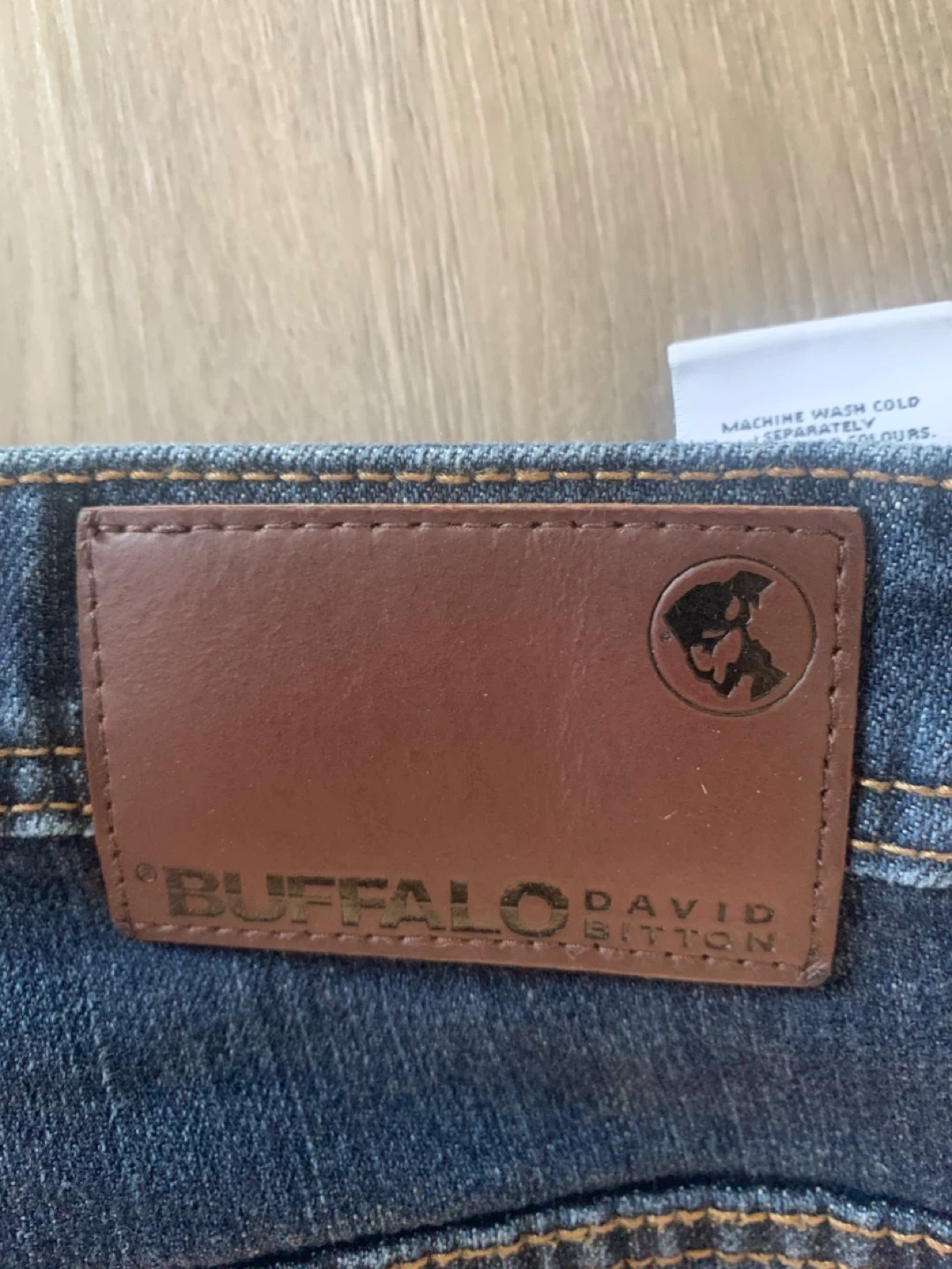 These are Buffalo David Bitton men's jeans in a straight stretch fit. They're made with 99% cotton and 1% spandex. The waist is 38 inches and the inseam is 30 inches.