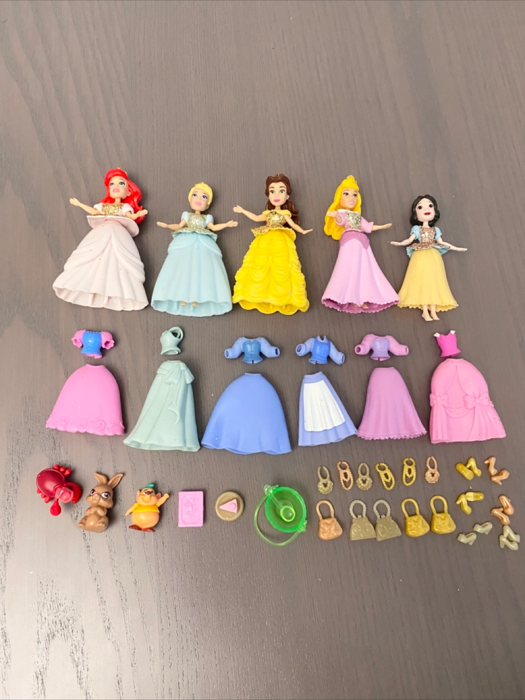 Disney Princess Polly Pocket Style Dolls And Accessories Lot