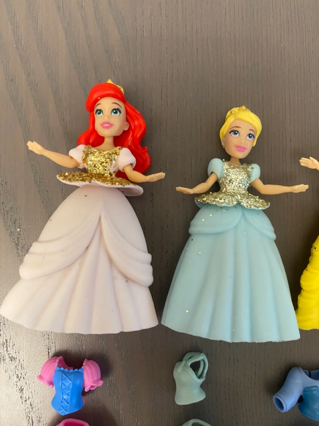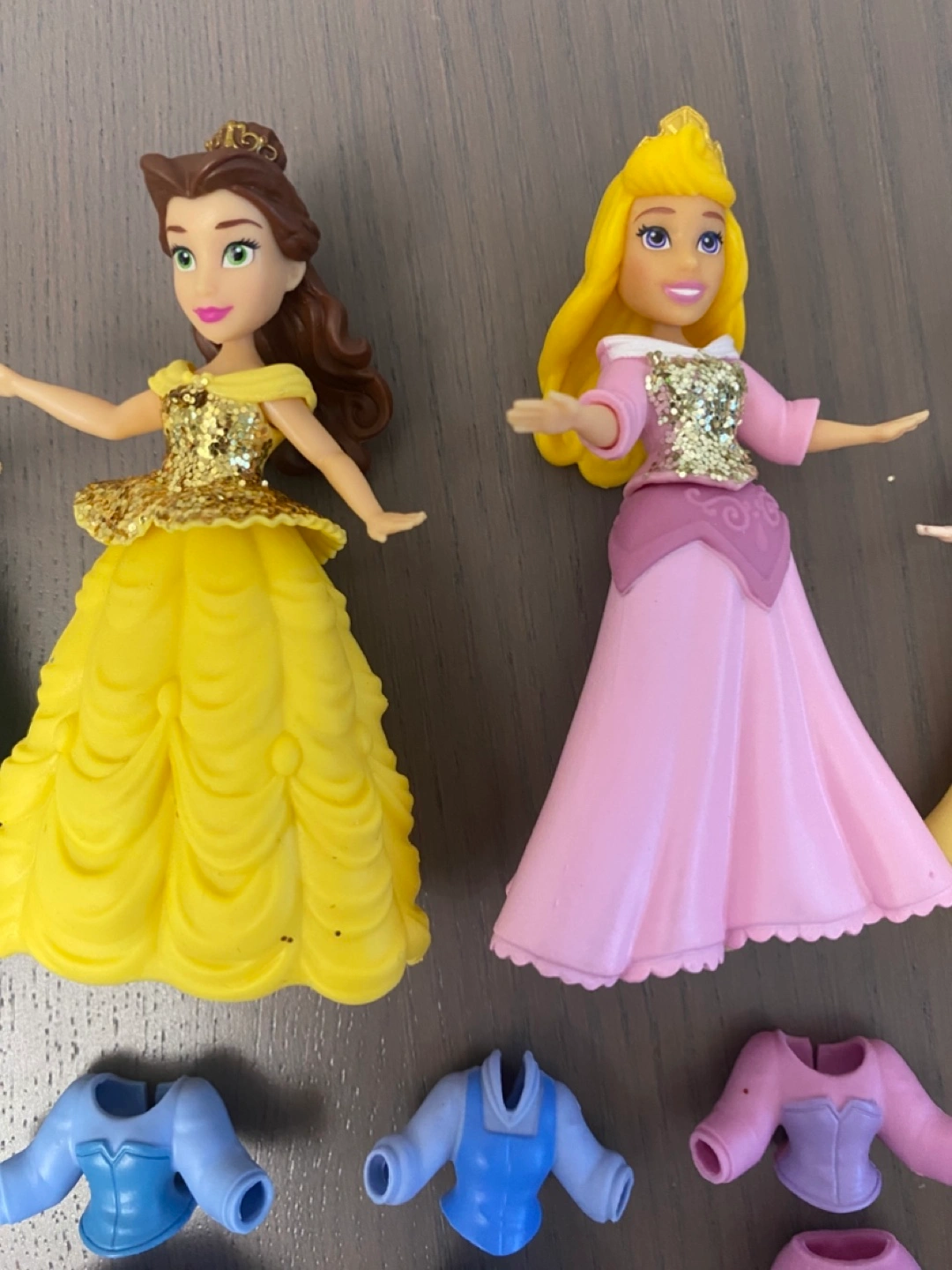 This set features several Disney Princess mini dolls, each with removable outfits and accessories. It includes Ariel, Cinderella, Belle, Aurora, and Snow White. Perfect for fans of Disney Princesses looking to expand their collection or for imaginative play!